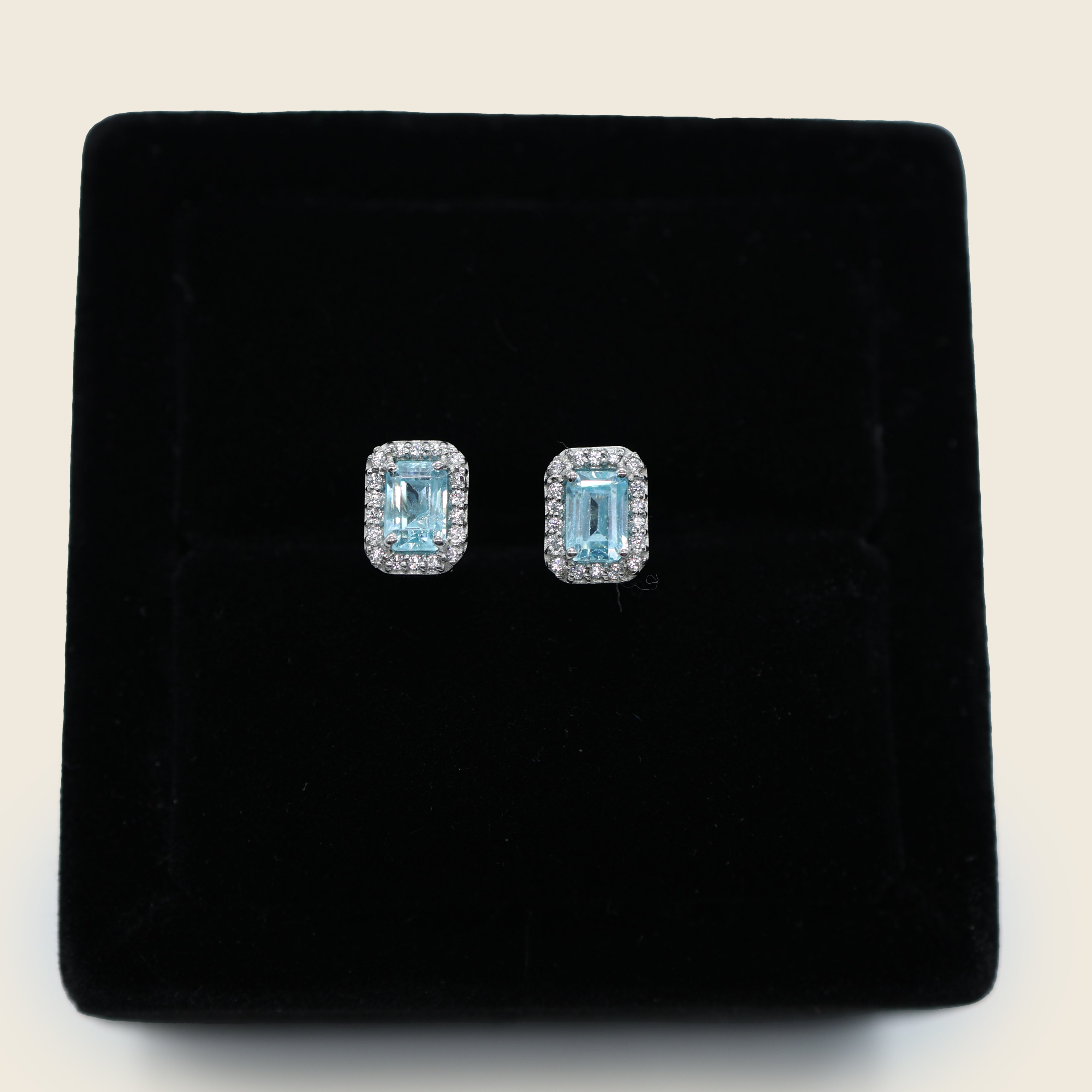 Aanura Emerald-Cut Gemstone Stud Earrings in 925 Silver