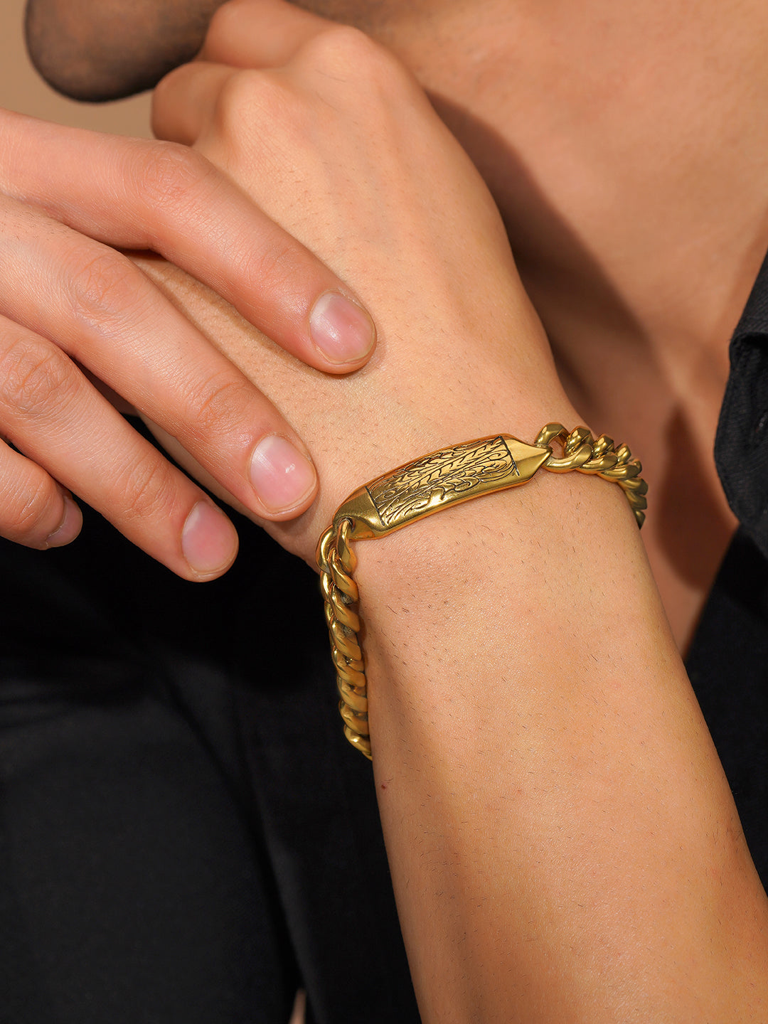 Aanura Gold Stainless Steel Chain Bracelet For Men