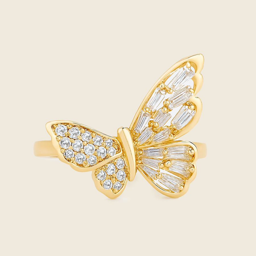 Aanura Gold Butterfly Crystal Embellished Statement Ring