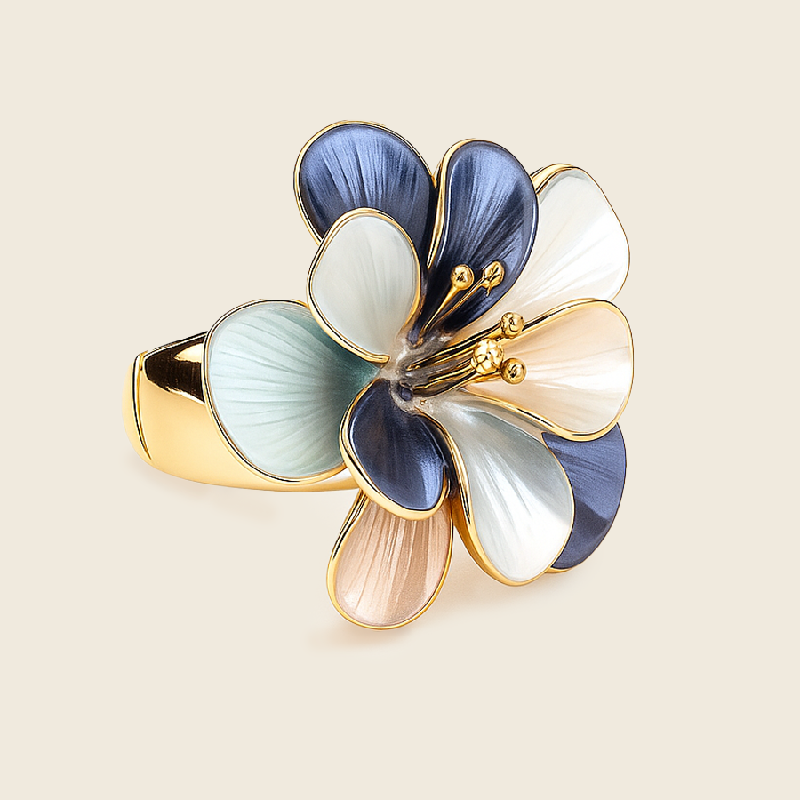 Aanura Gold Multicolor Floral Crystal Statement Ring