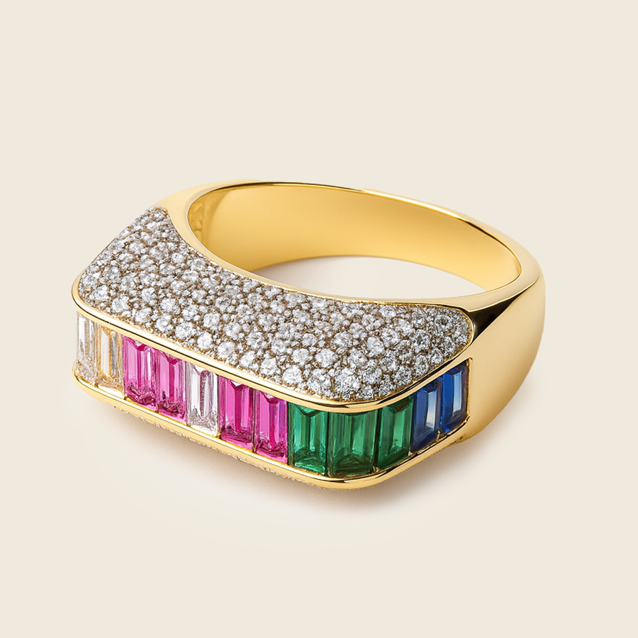 Aanura Gold-Plated Multi-Gemstone Statement Ring