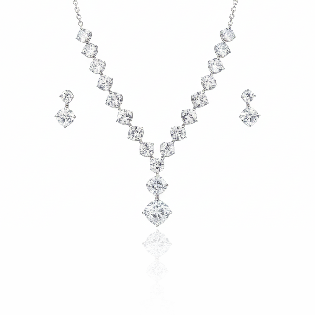 Aanura Clear Crystal Drop Necklace Set in Stainless Steel