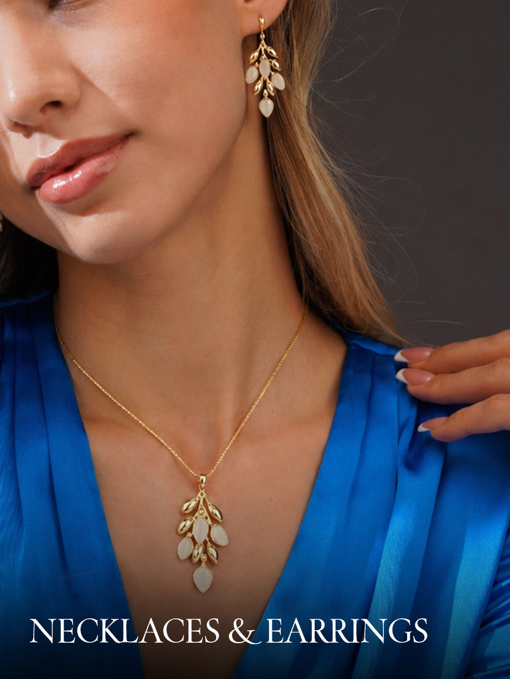 Aanura Dual-Tone Leaf Necklace & Earrings Set