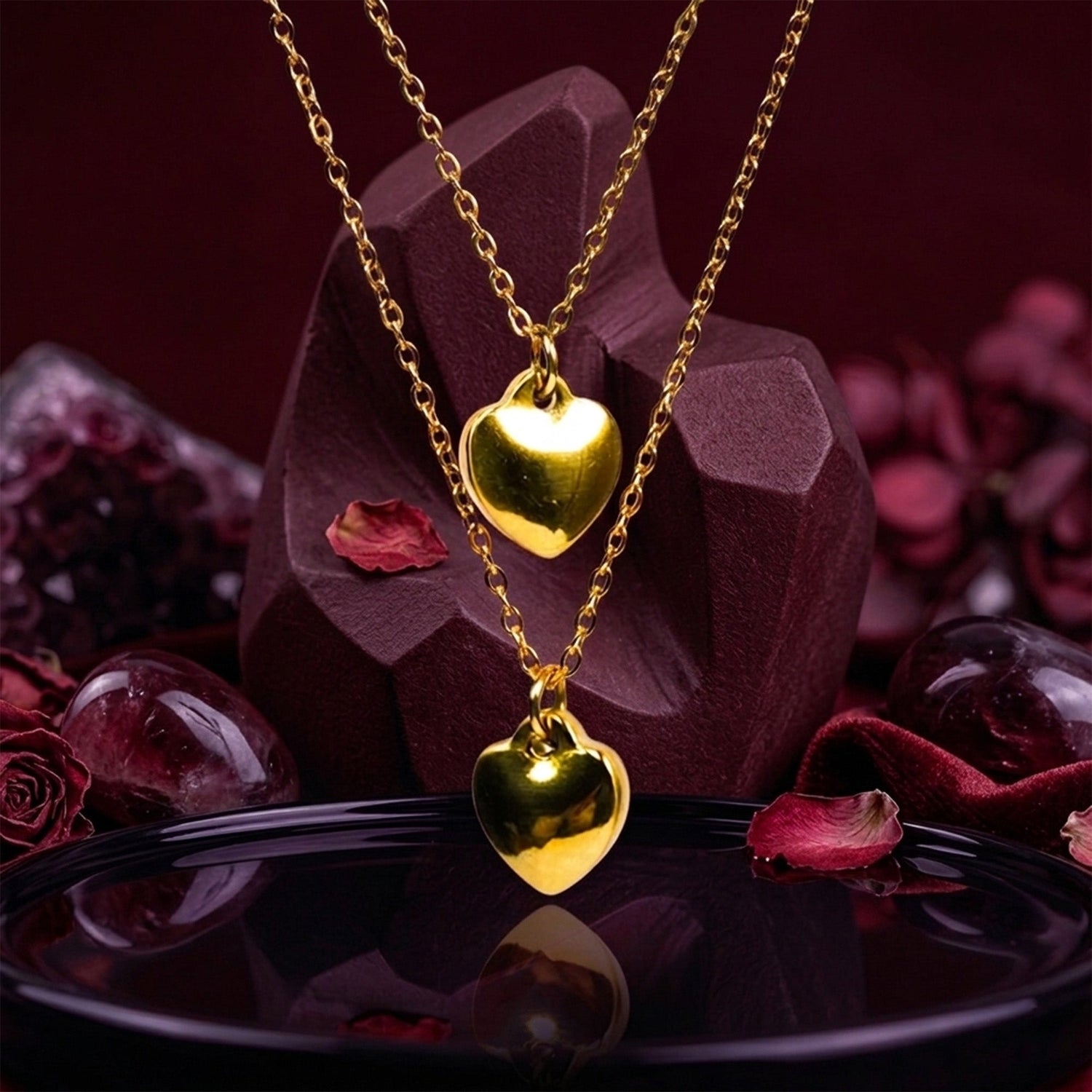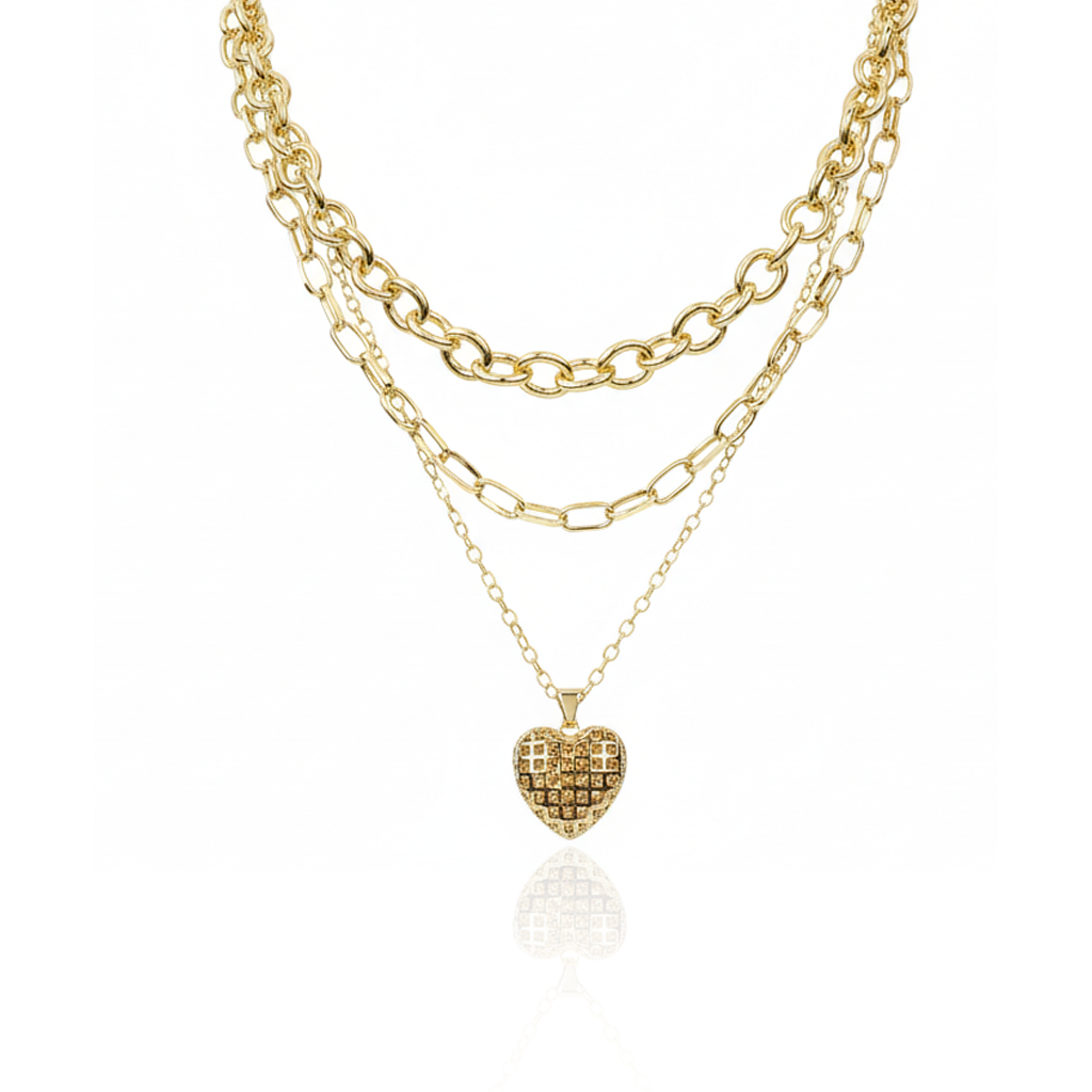 Aanura Layered Gold Chain Necklace with Waffle Heart Pendant