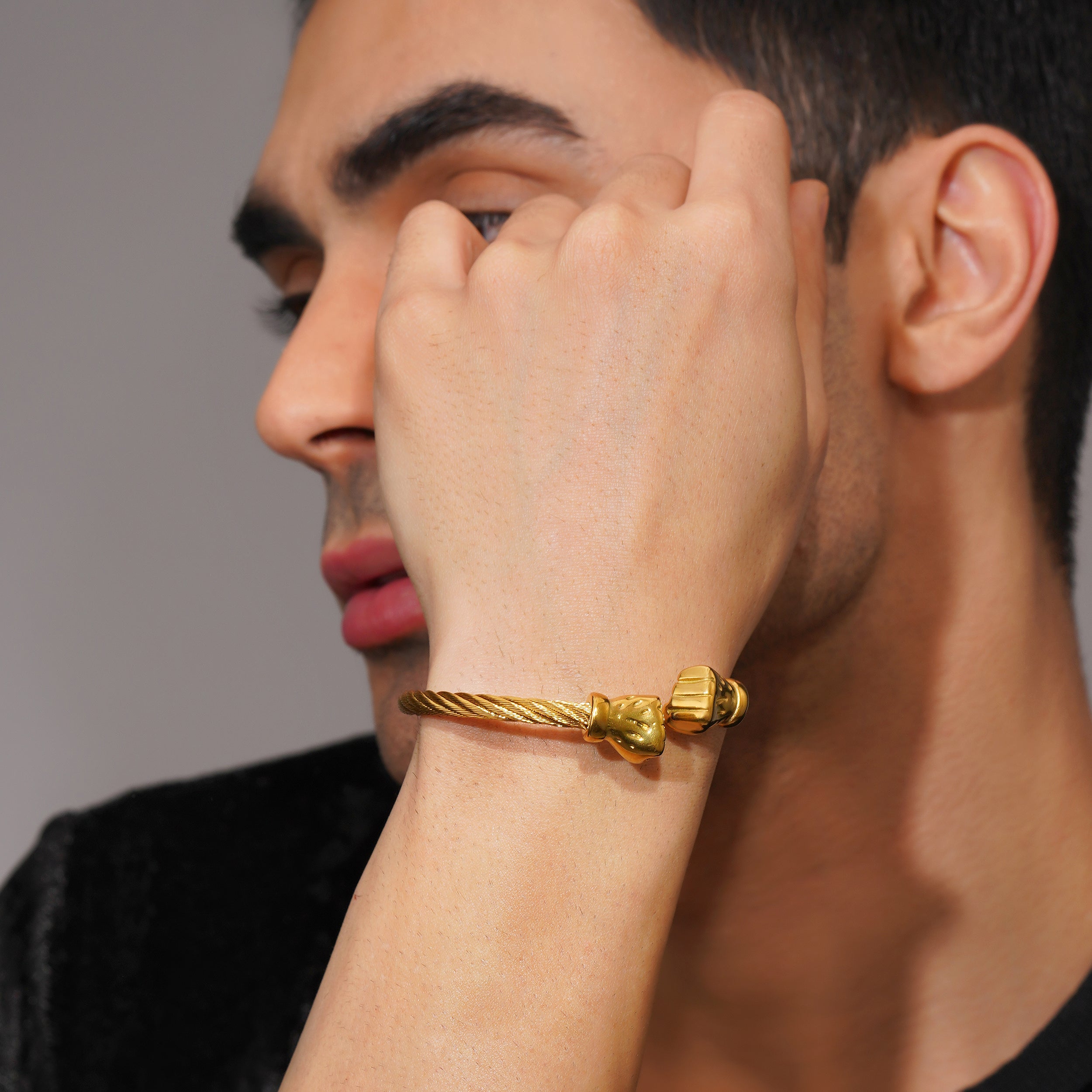 Aanura Gold Skull Cuff Bracelet For Men