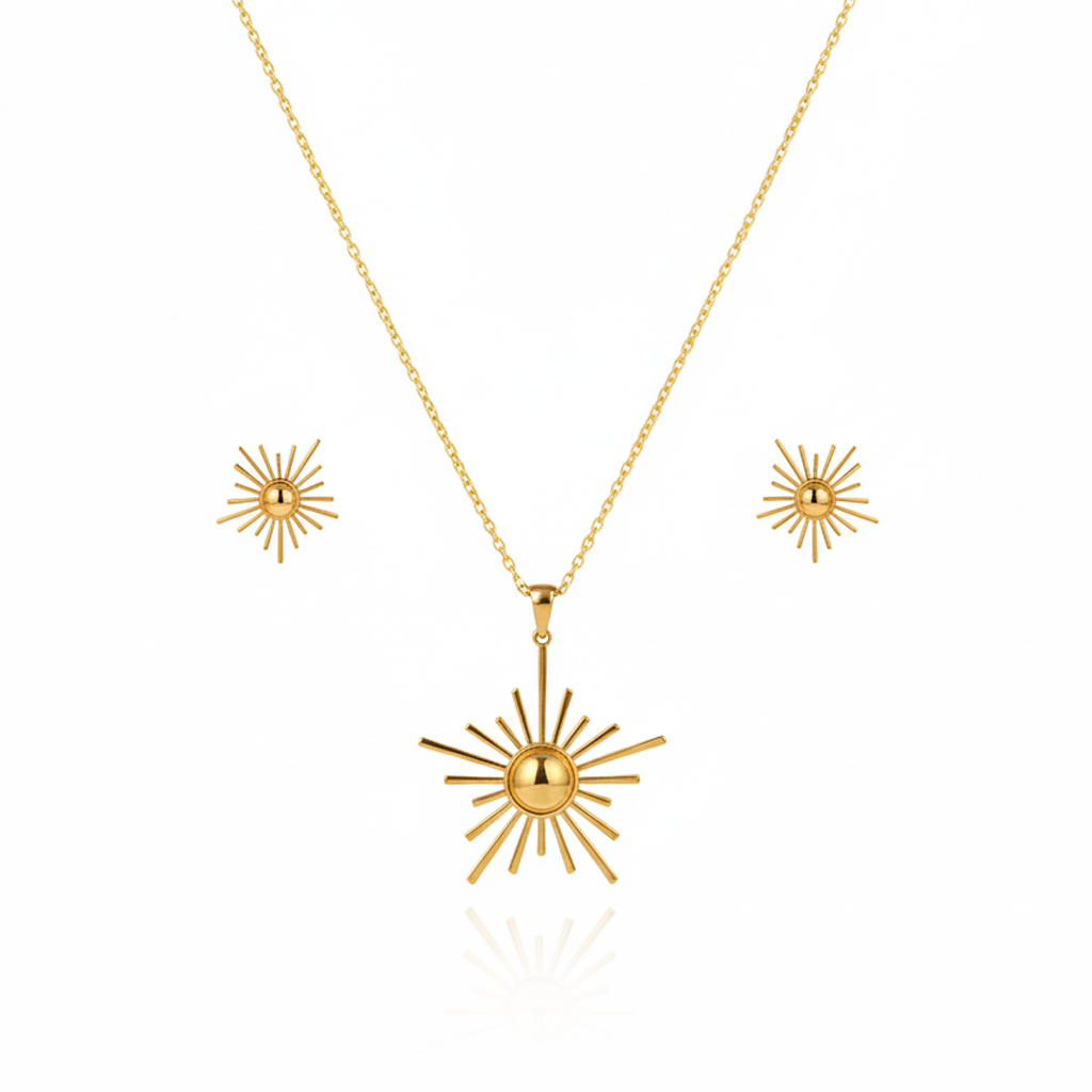 Aanura Golden Sunburst Necklace & Earrings Set