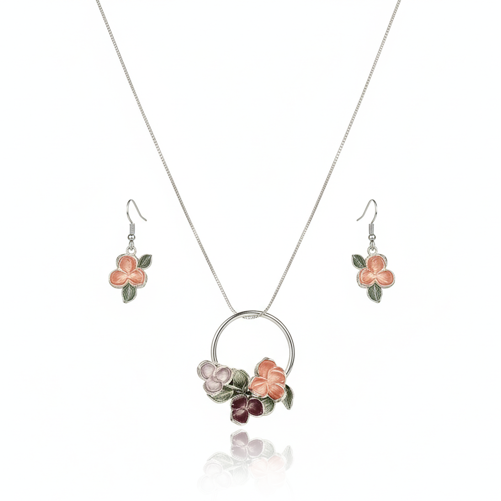 Aanura Floral Circle Necklace & Earrings Set