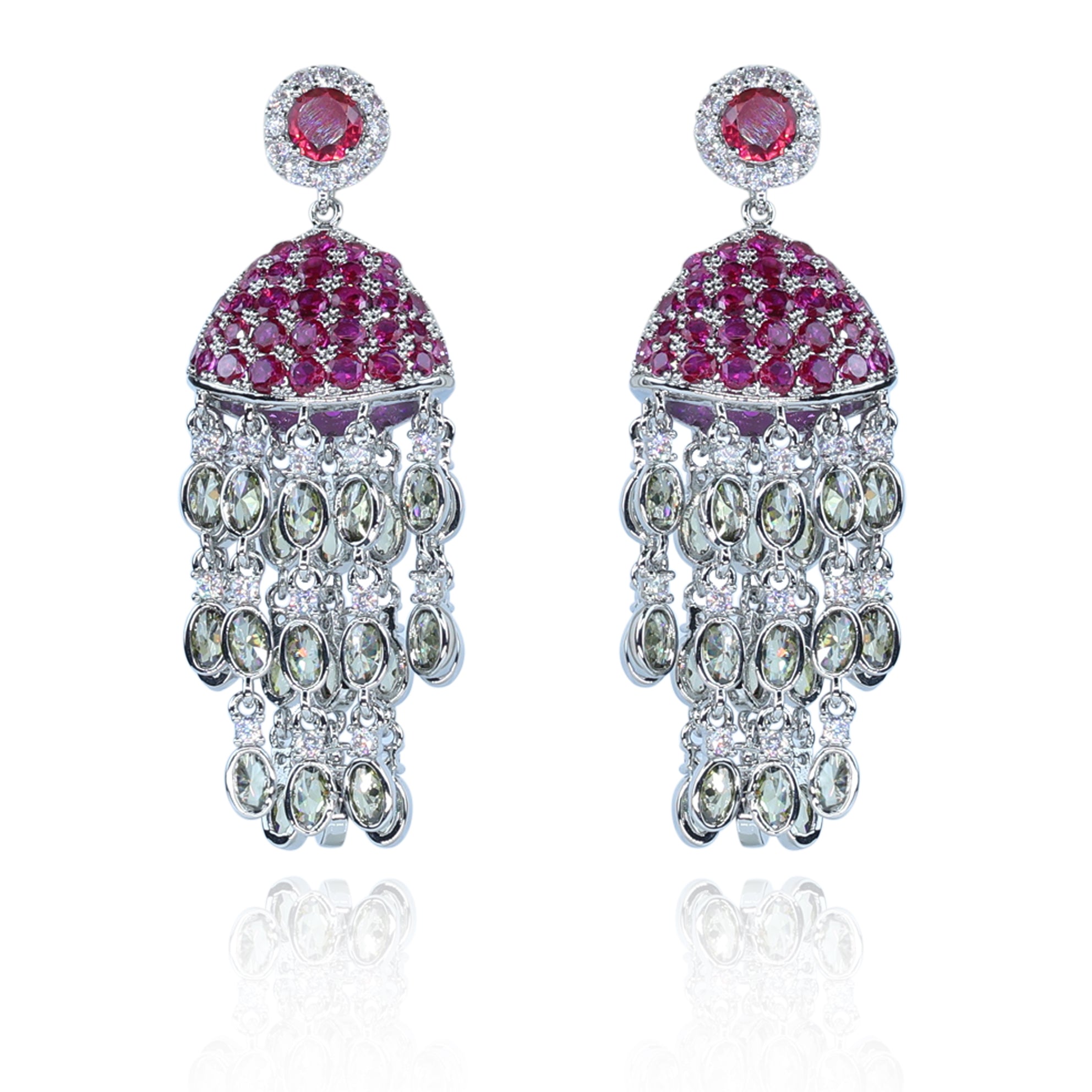 Aanura Red Dome Tassel Jhumka-Style Earrings