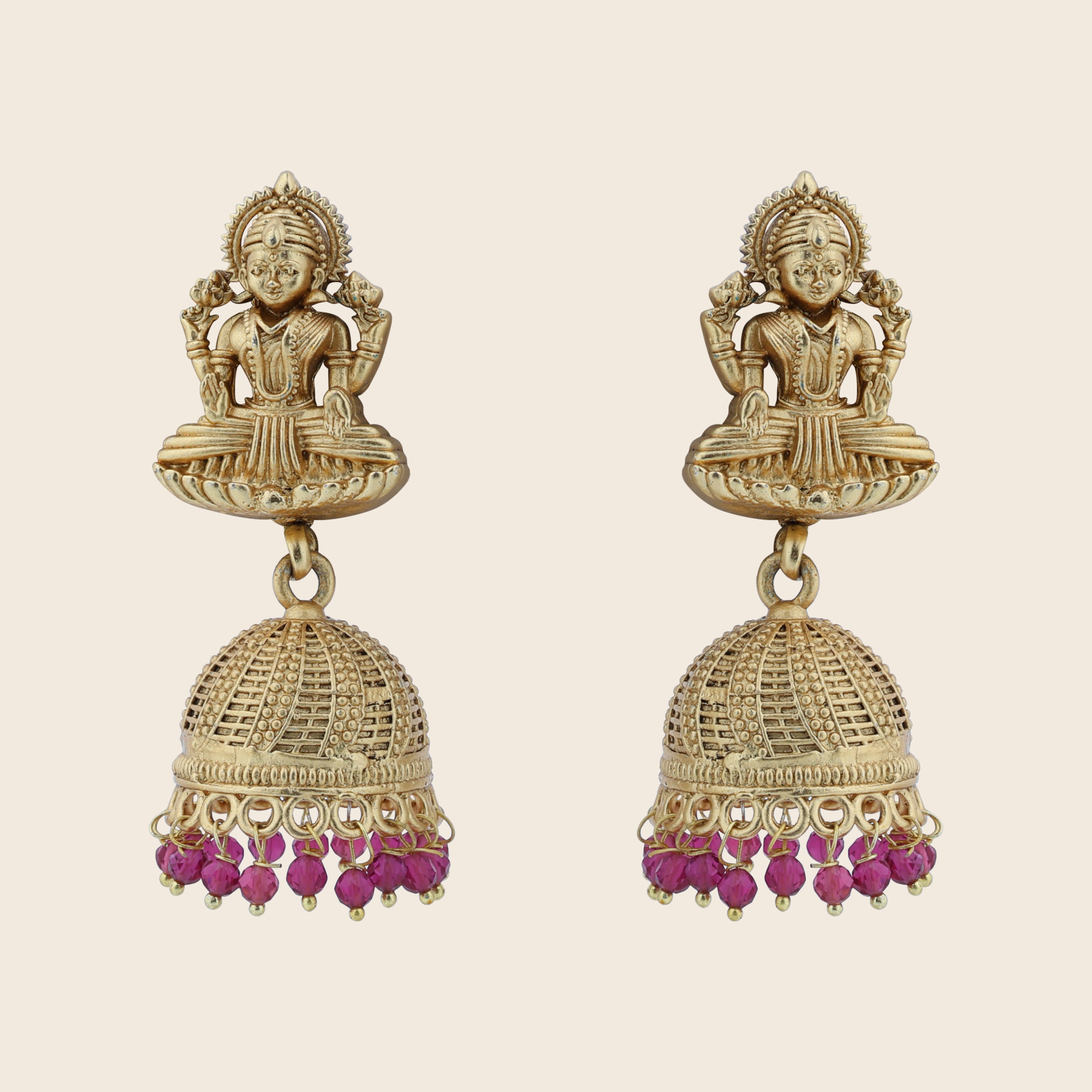 Aanura Temple Earrings with Red Stone Drop
