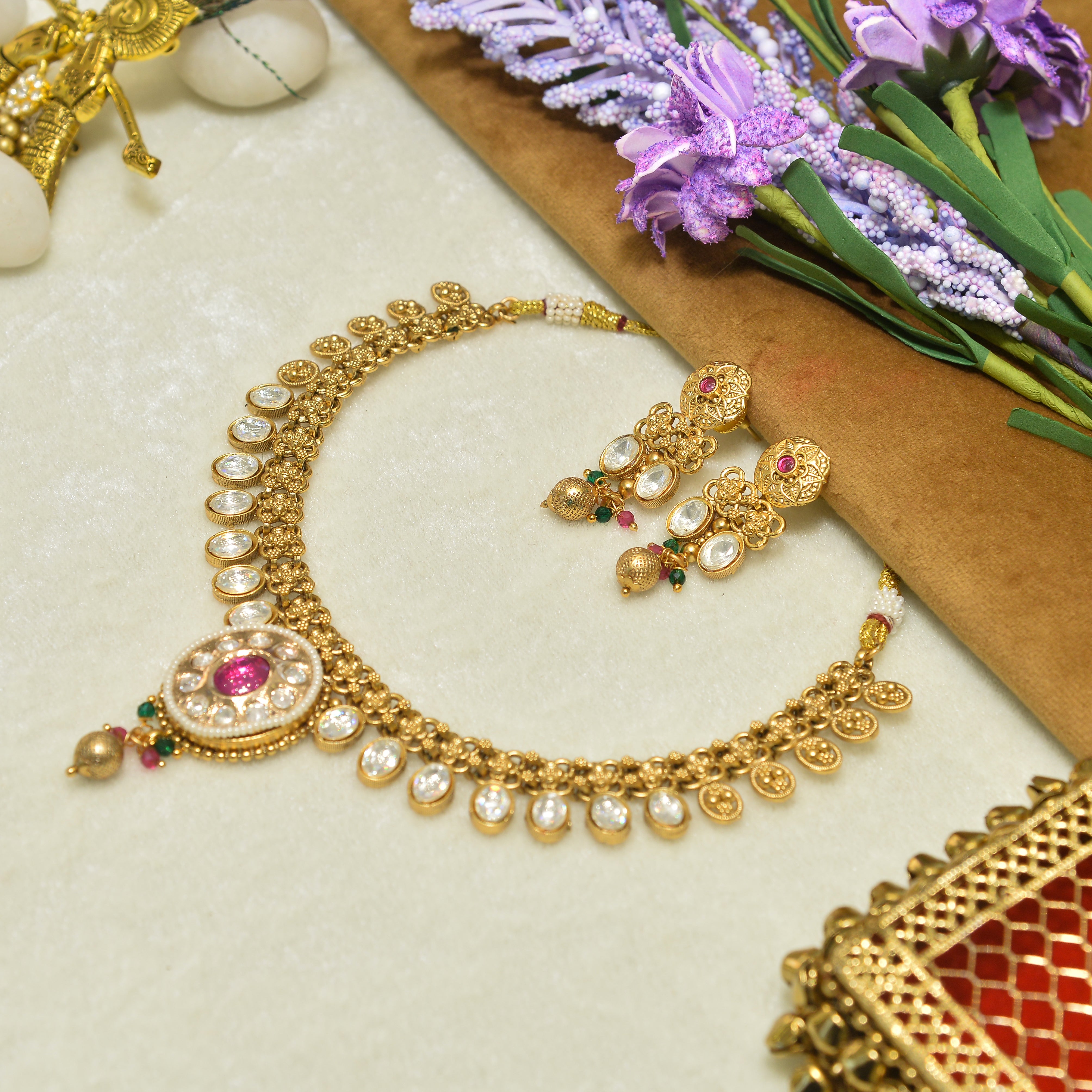 Aanura Gold Plated Traditional Necklace & Earring Set