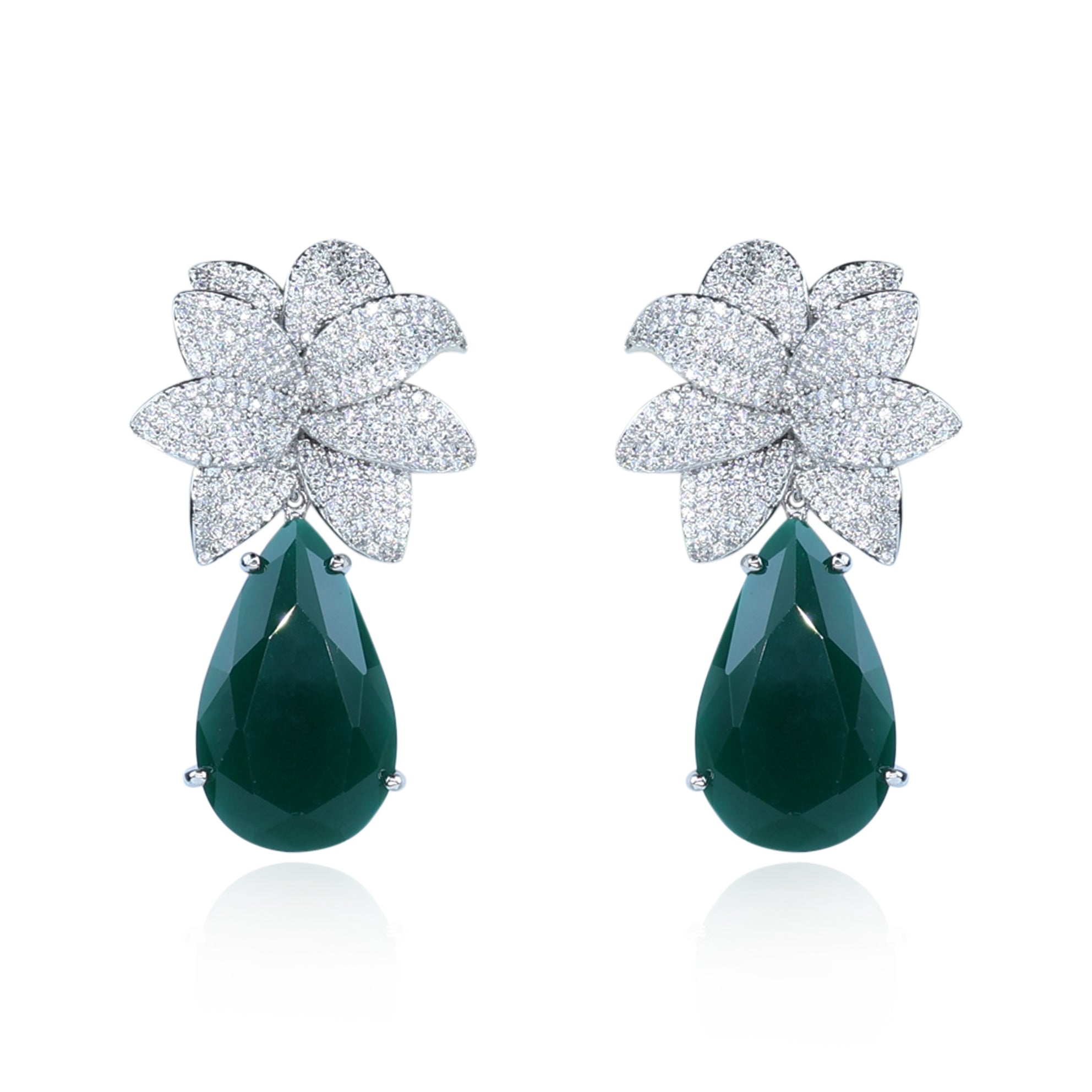 Aanura Green Teardrop Floral Dangle Earrings