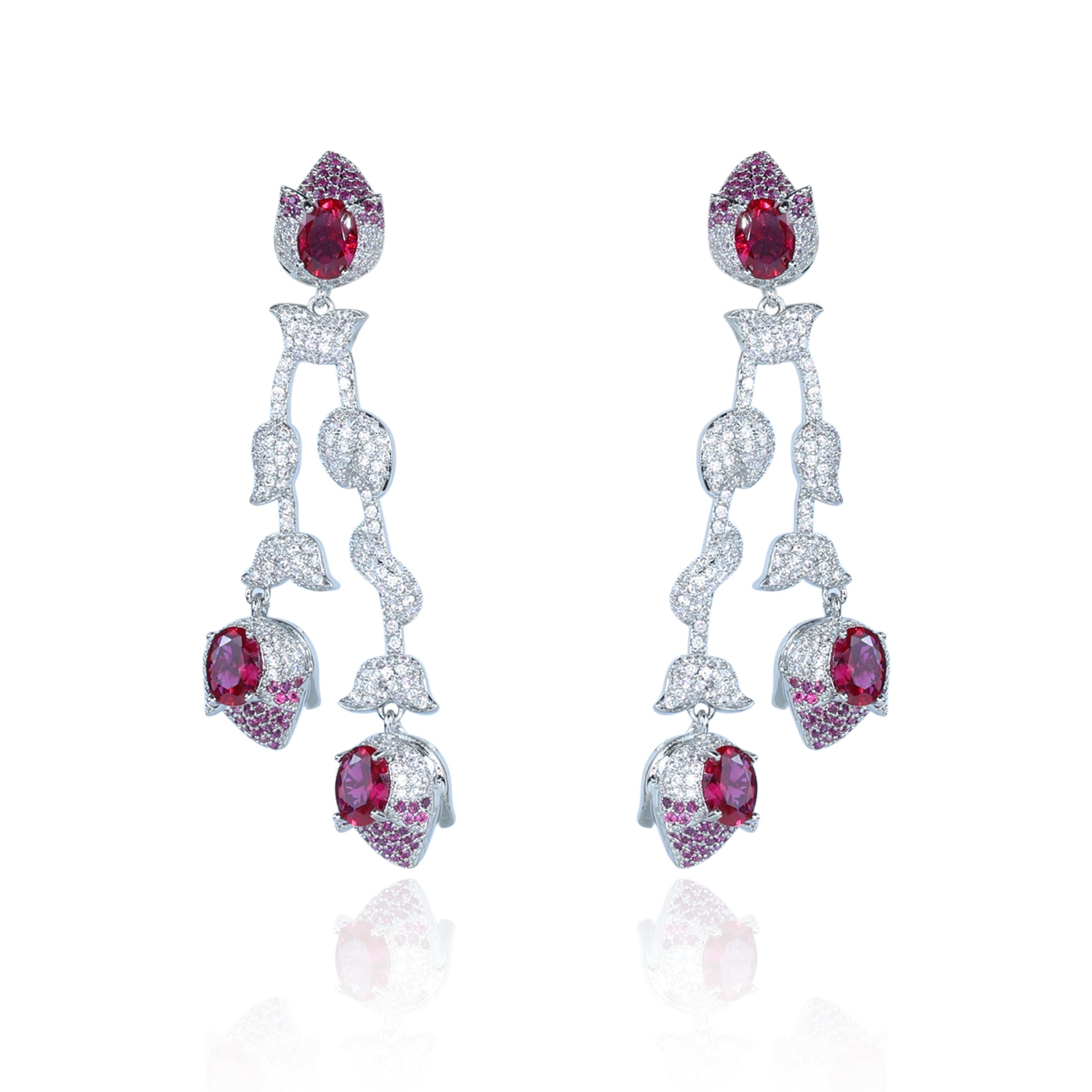 Aanura Silver Ruby Dangle Statement Earrings