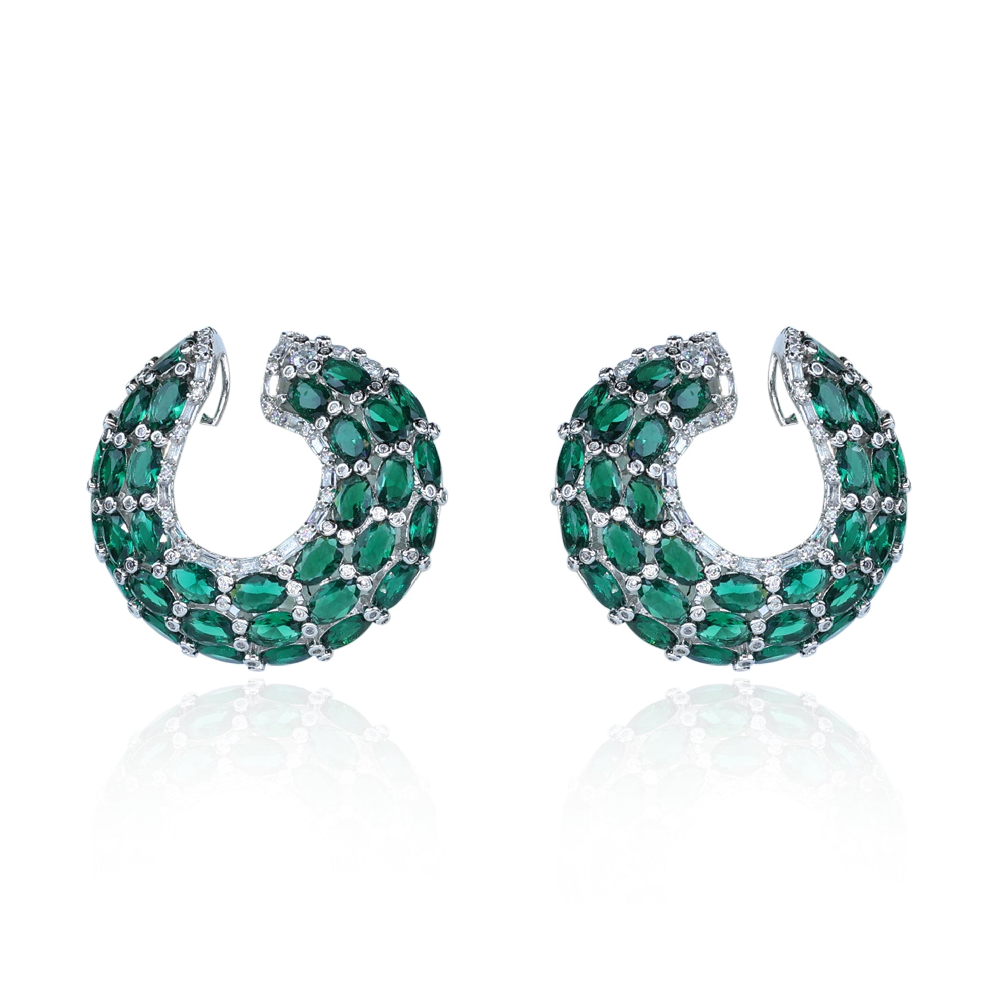 Aanura Emerald Green Encrusted Hoop Earrings