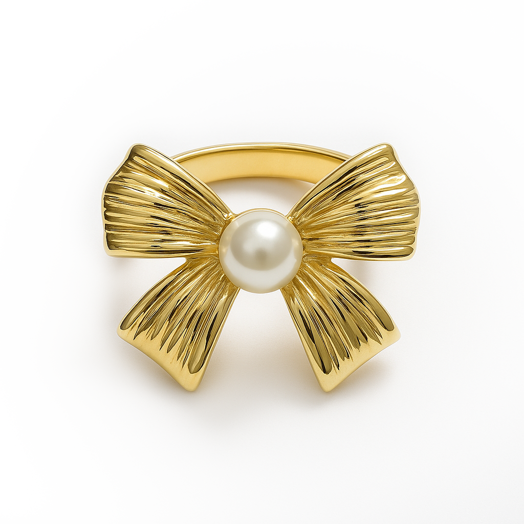 Aanura Gold-Plated Blossom Bow Ring with Pearl