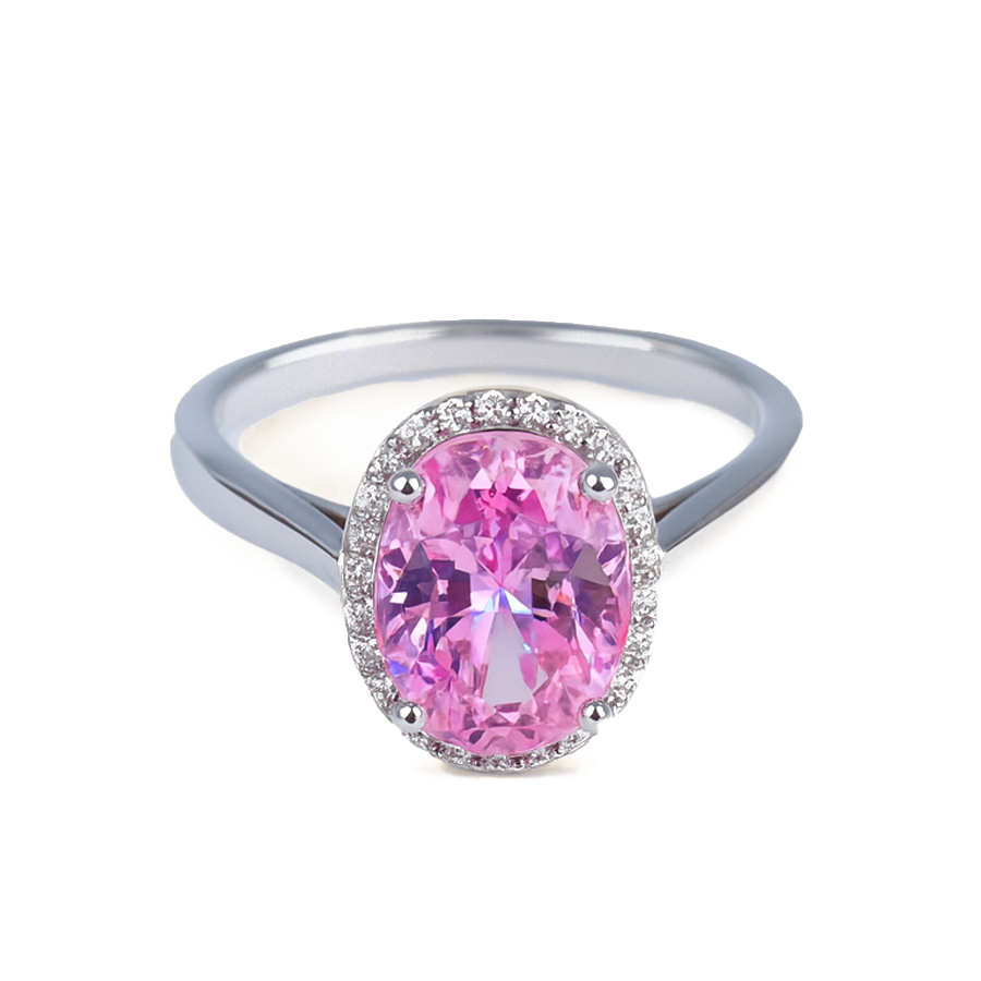 Aanura Oval Halo Silver Ring – Elegant Statement Piece