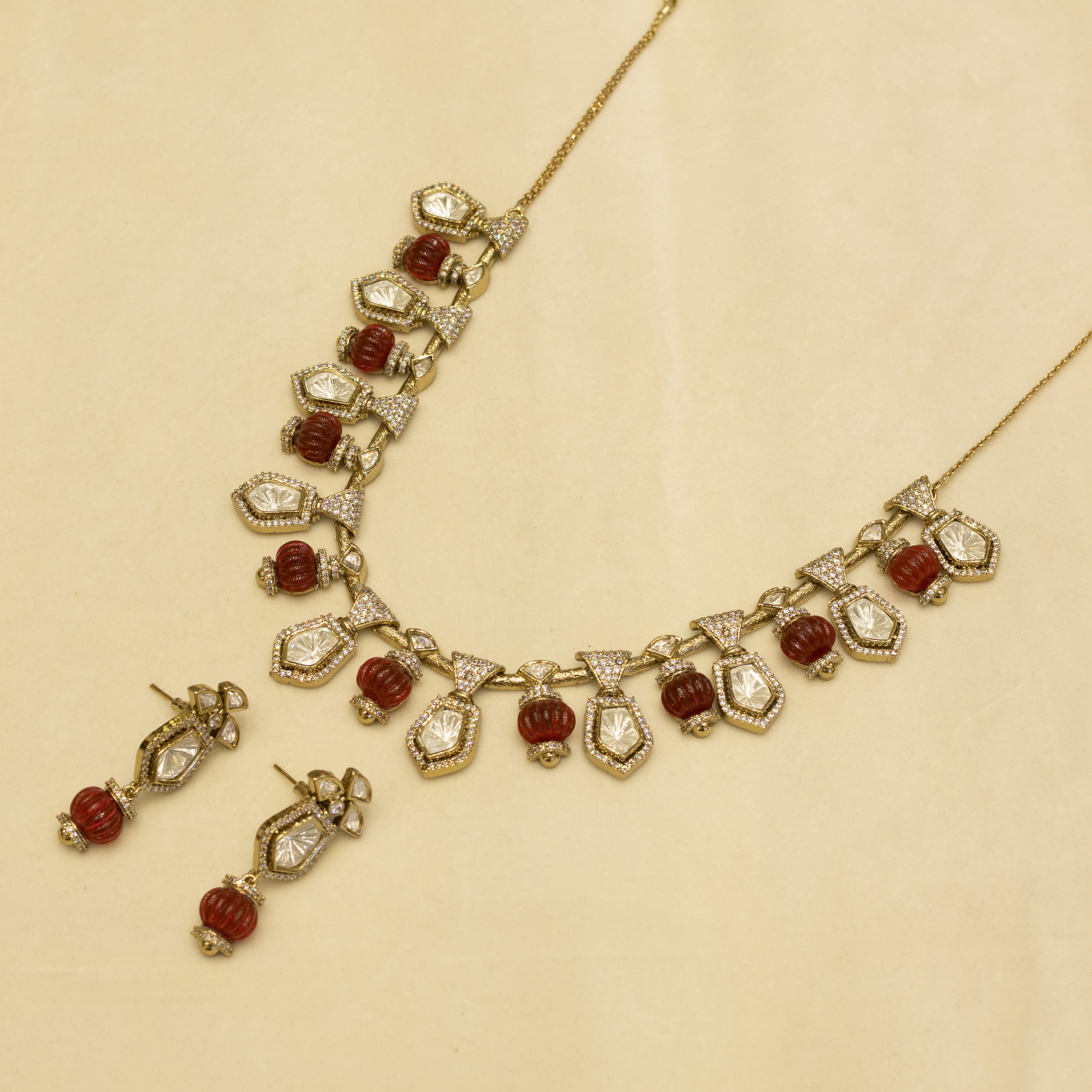 Ethnic wear jewellery includes all jewellery designed to complement Indian outfits such as sarees, lehengas, shararas, kurtas, Anarkalis, and festive wear. These pieces typically use:
