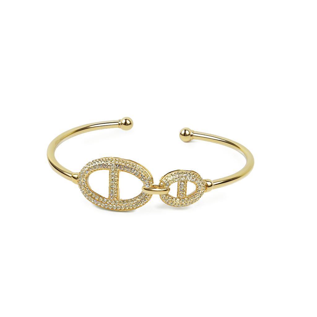 Aanura Double Oval Gold Open Cuff Bracelet