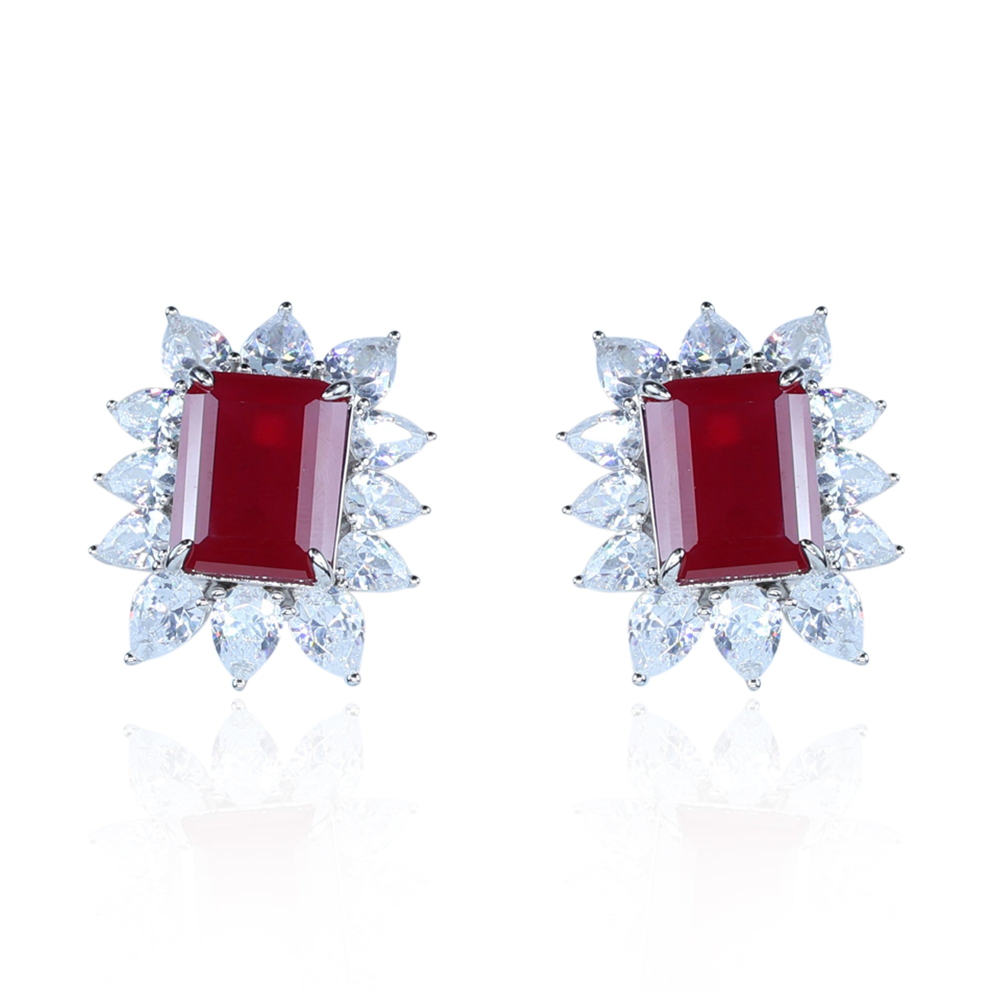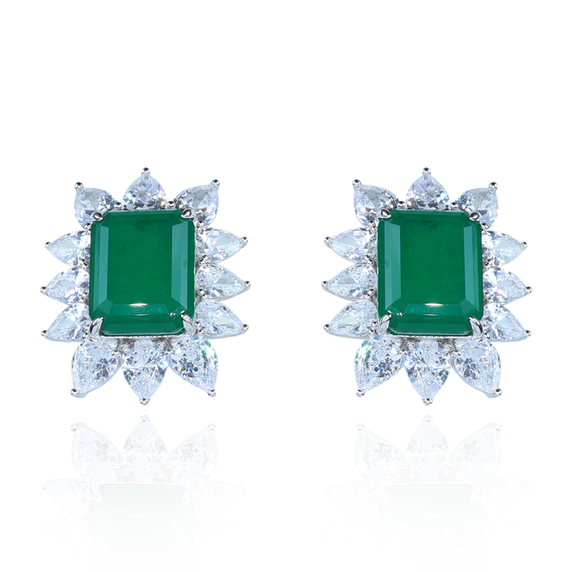 Aanura Emerald-Cut Green CZ Halo Statement Stud Earrings