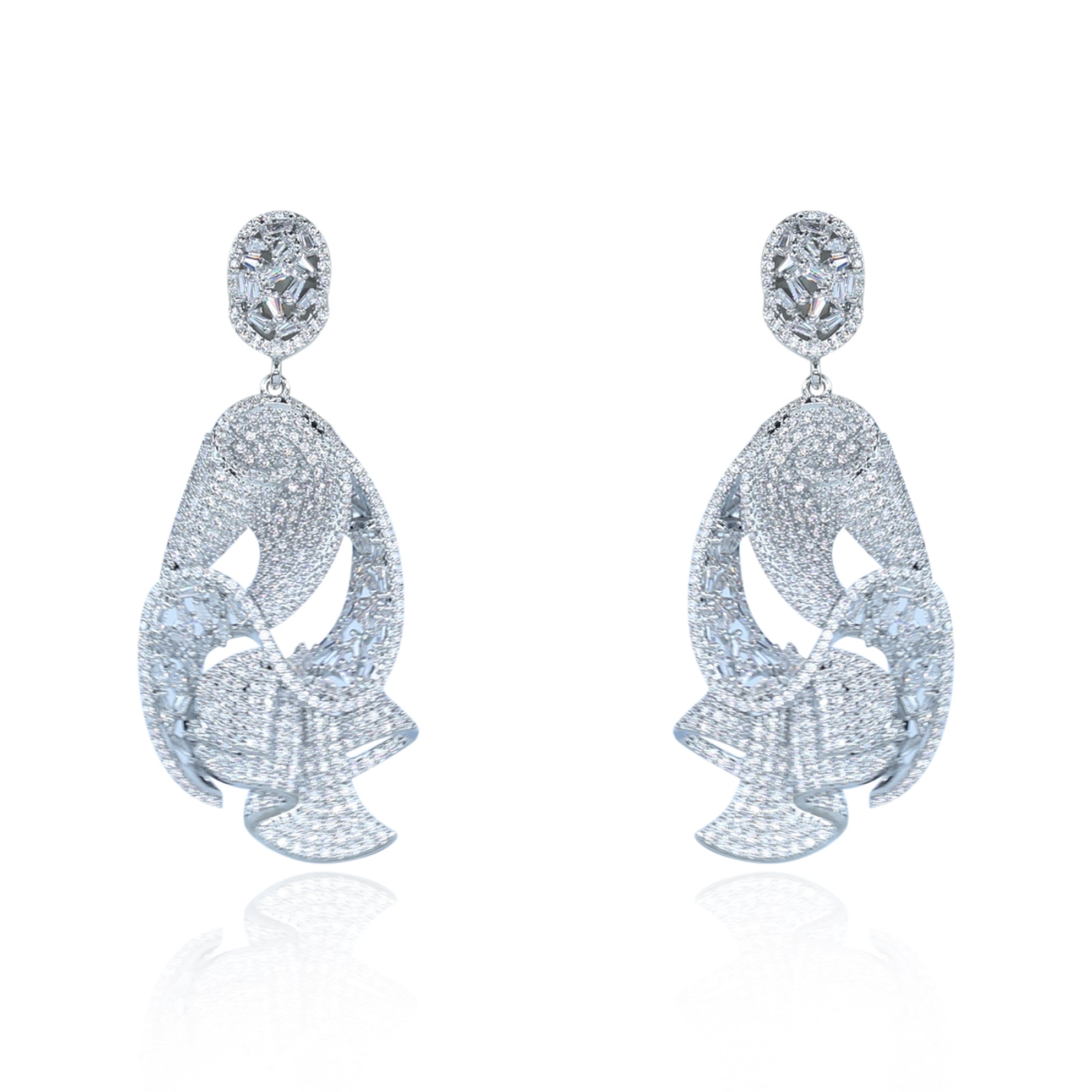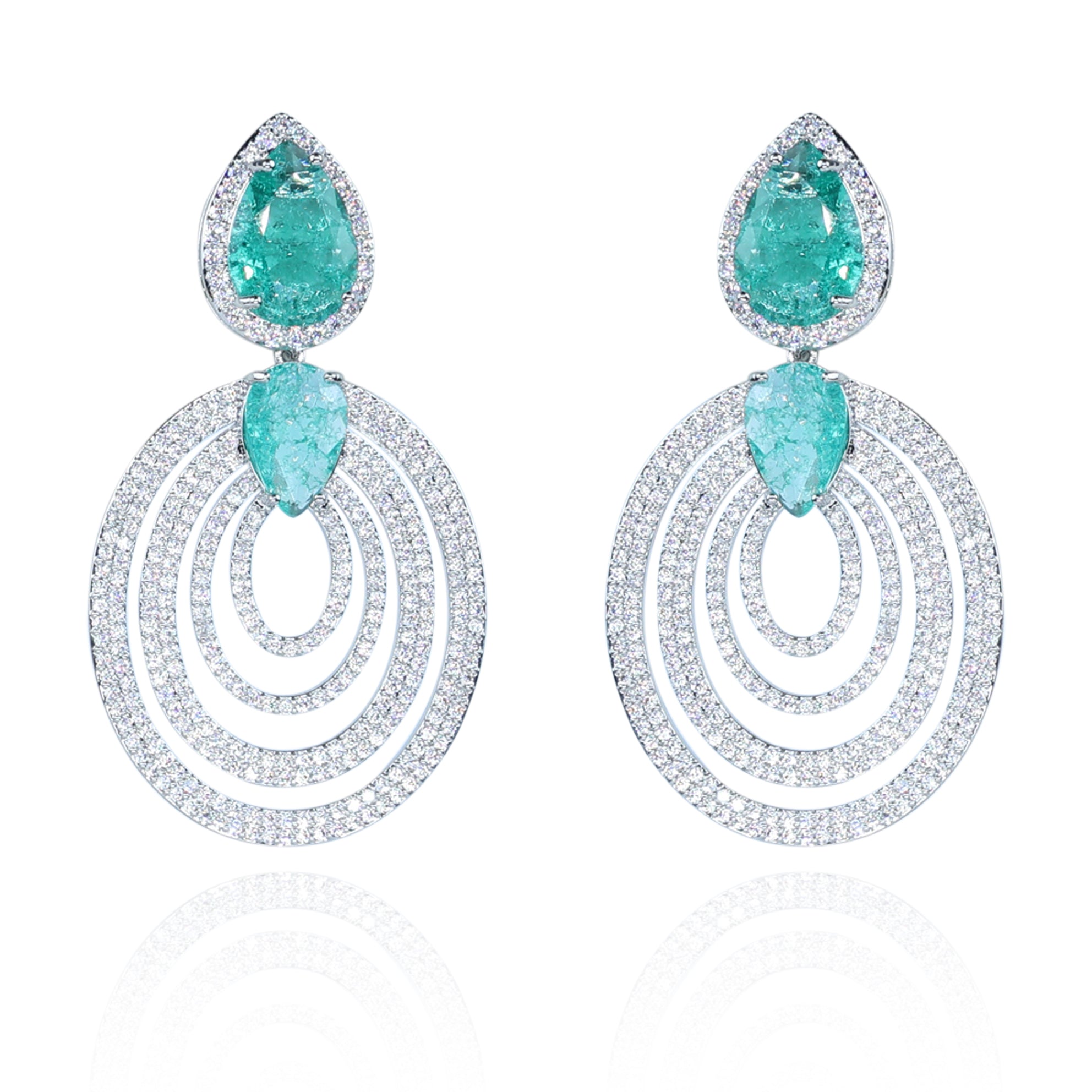 Aanura Silver Green Teardrop Fan Statement Earrings