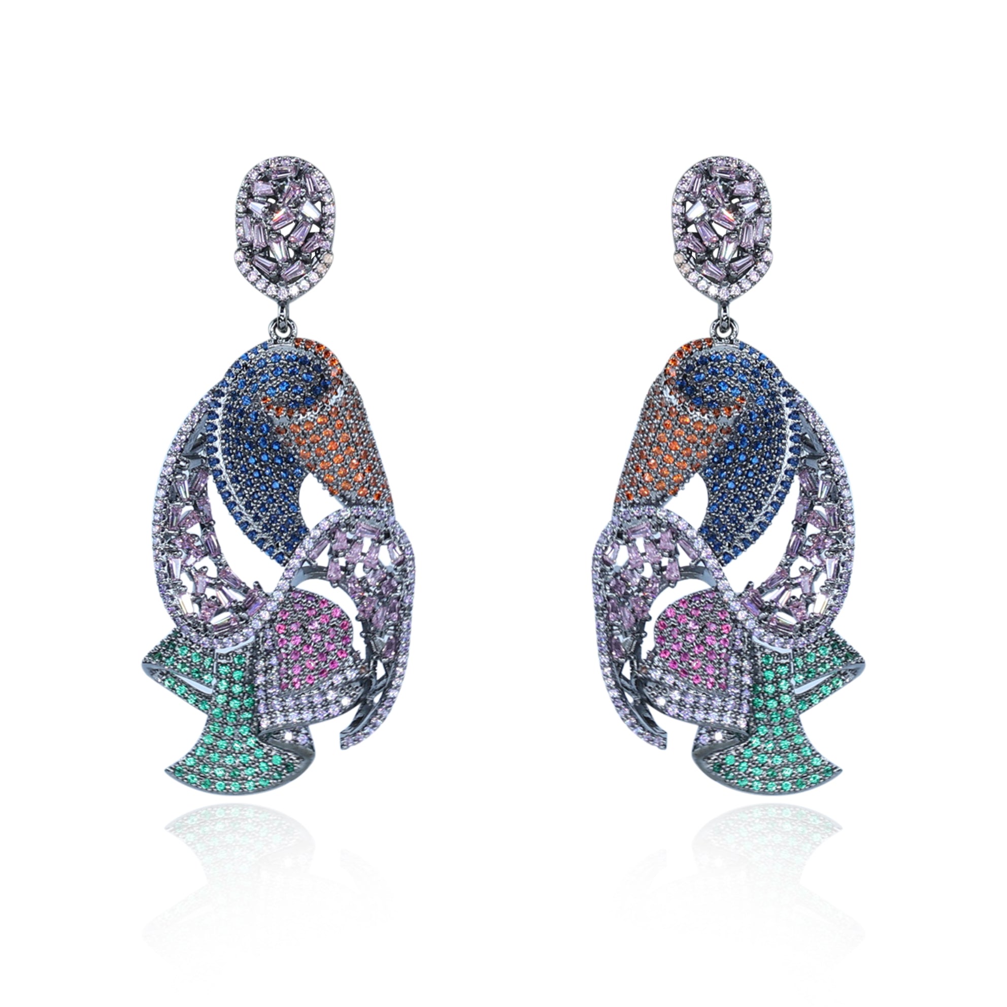 Aanura Floral Pink & Aqua Crystal Drop Earrings