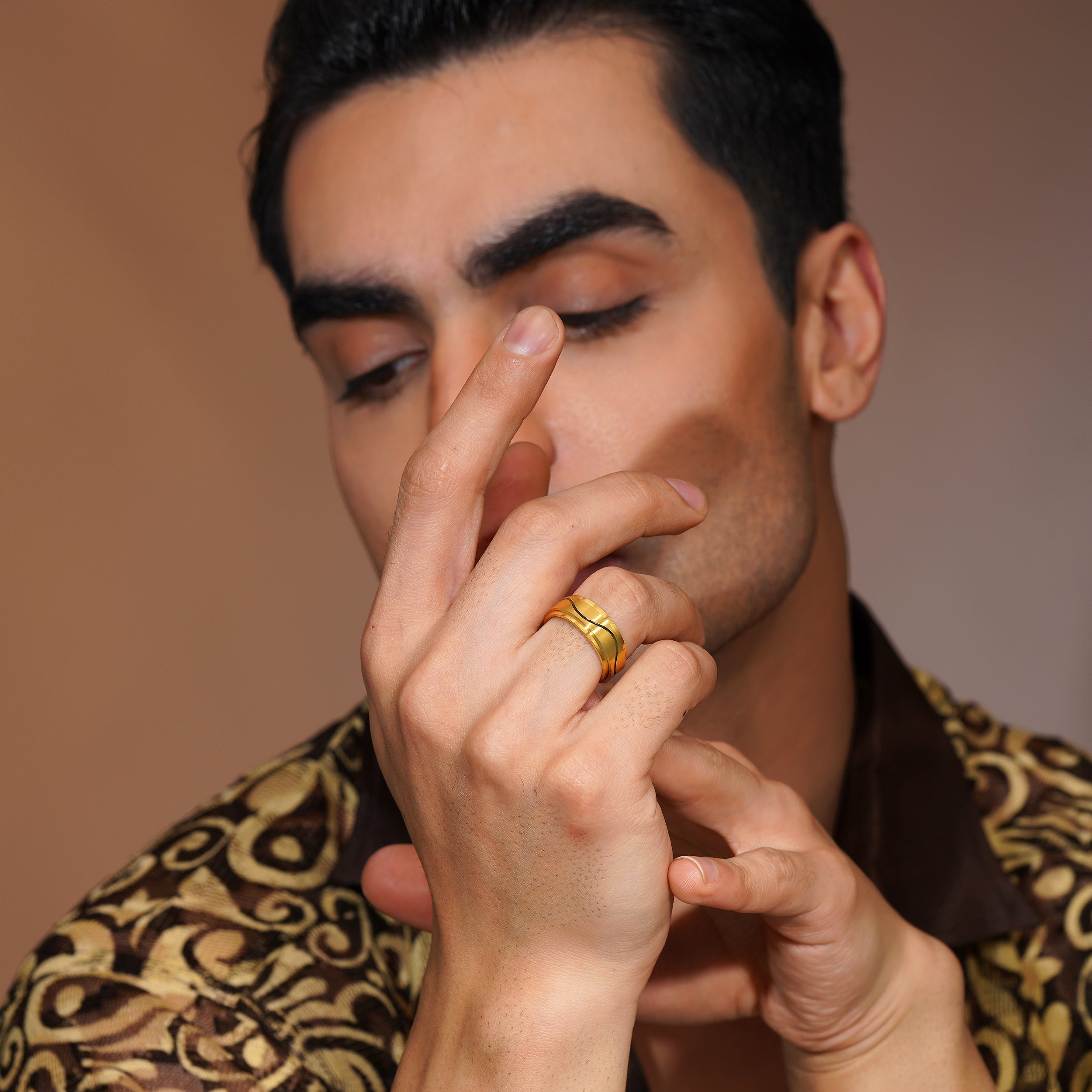 Aanura Gold-Plated Stainless Steel Ring For Men's