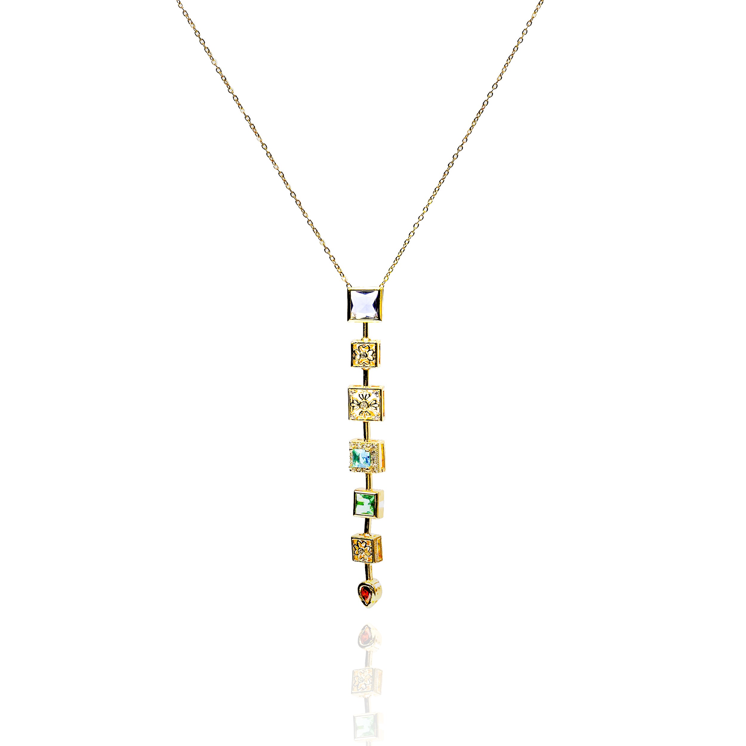Aanura Linear Square Drop Statement Necklace