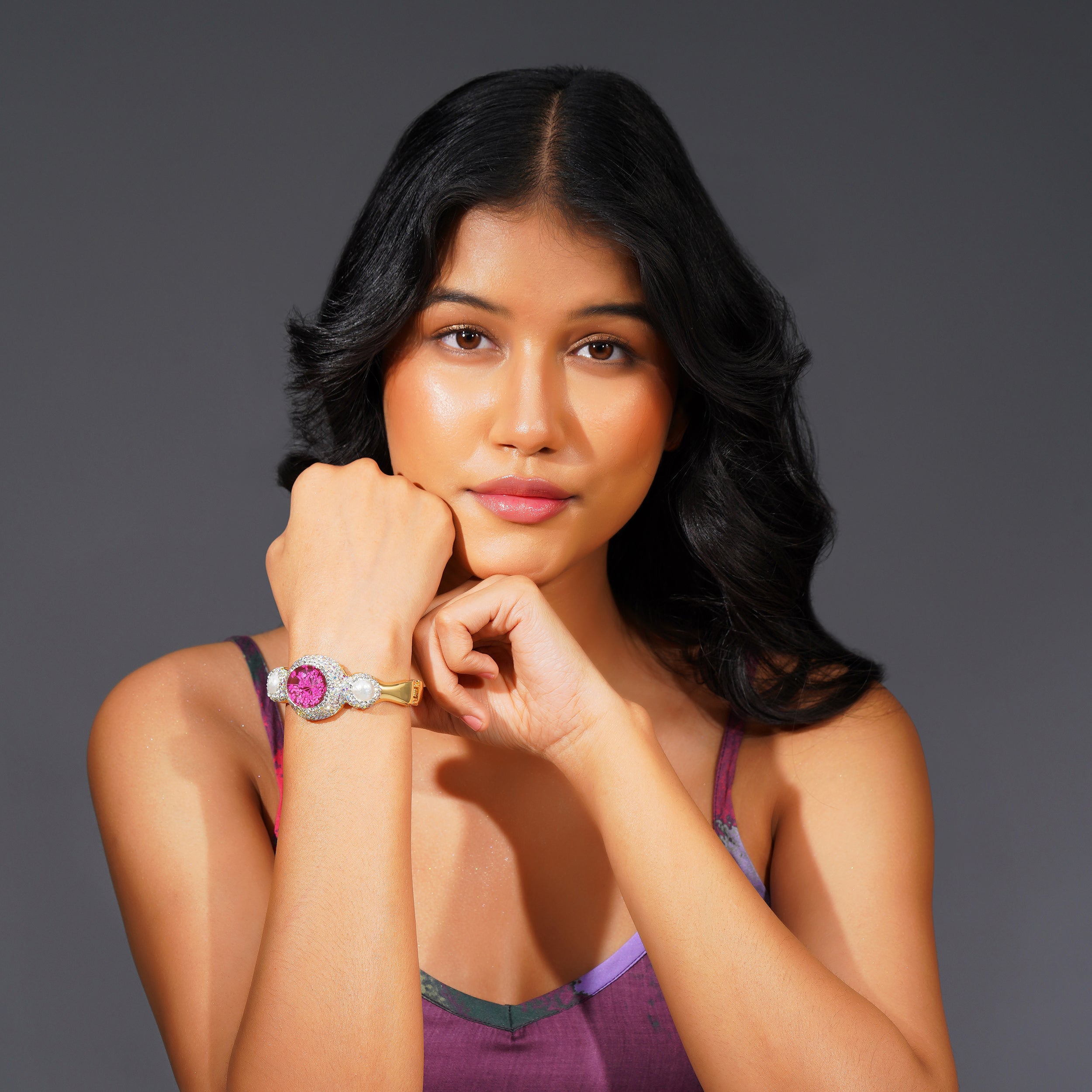 The faceted crystal reflects light beautifully, creating depth and brilliance without overpowering the design. Its open, adjustable band ensures comfort while maintaining a strong visual presence....(50%)Regular price ₹2,160.00Sale price ₹2,160.00 Regular priceUnit price per₹4,320.00 -