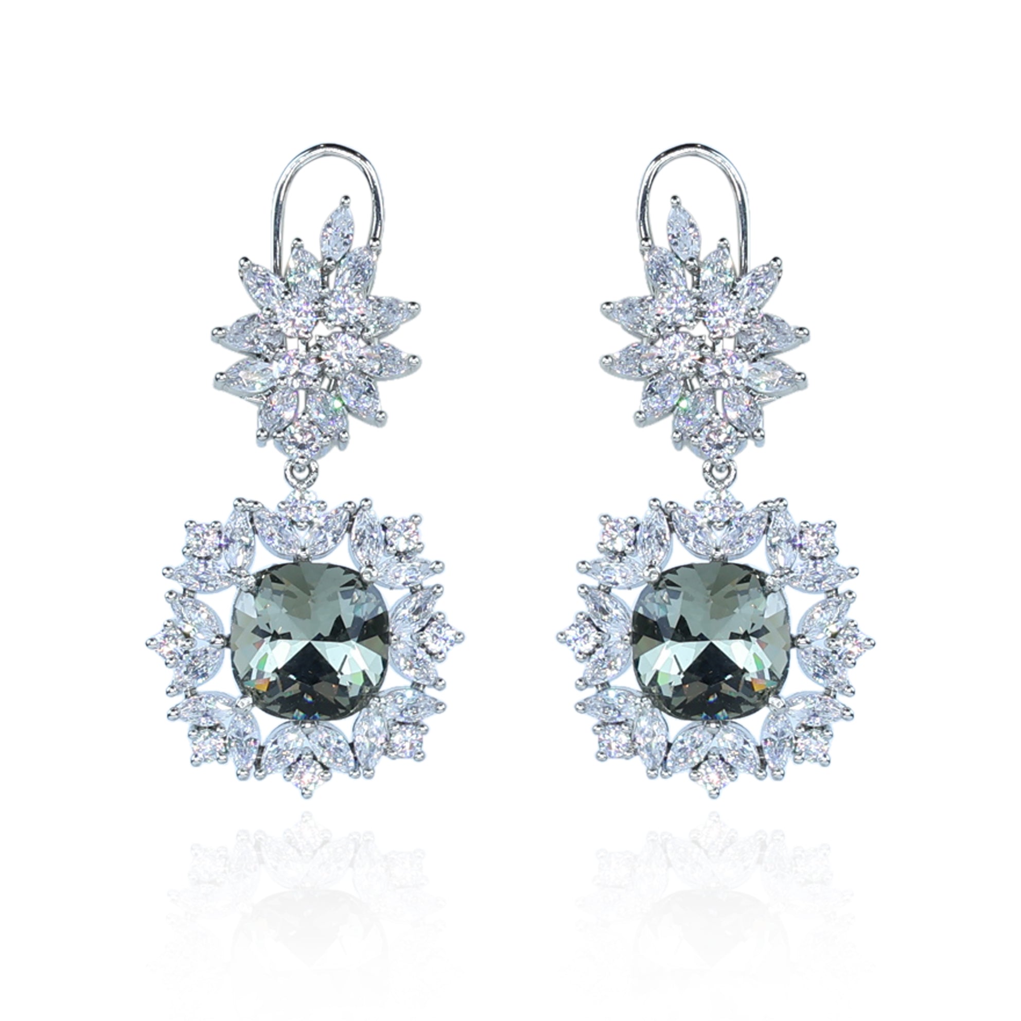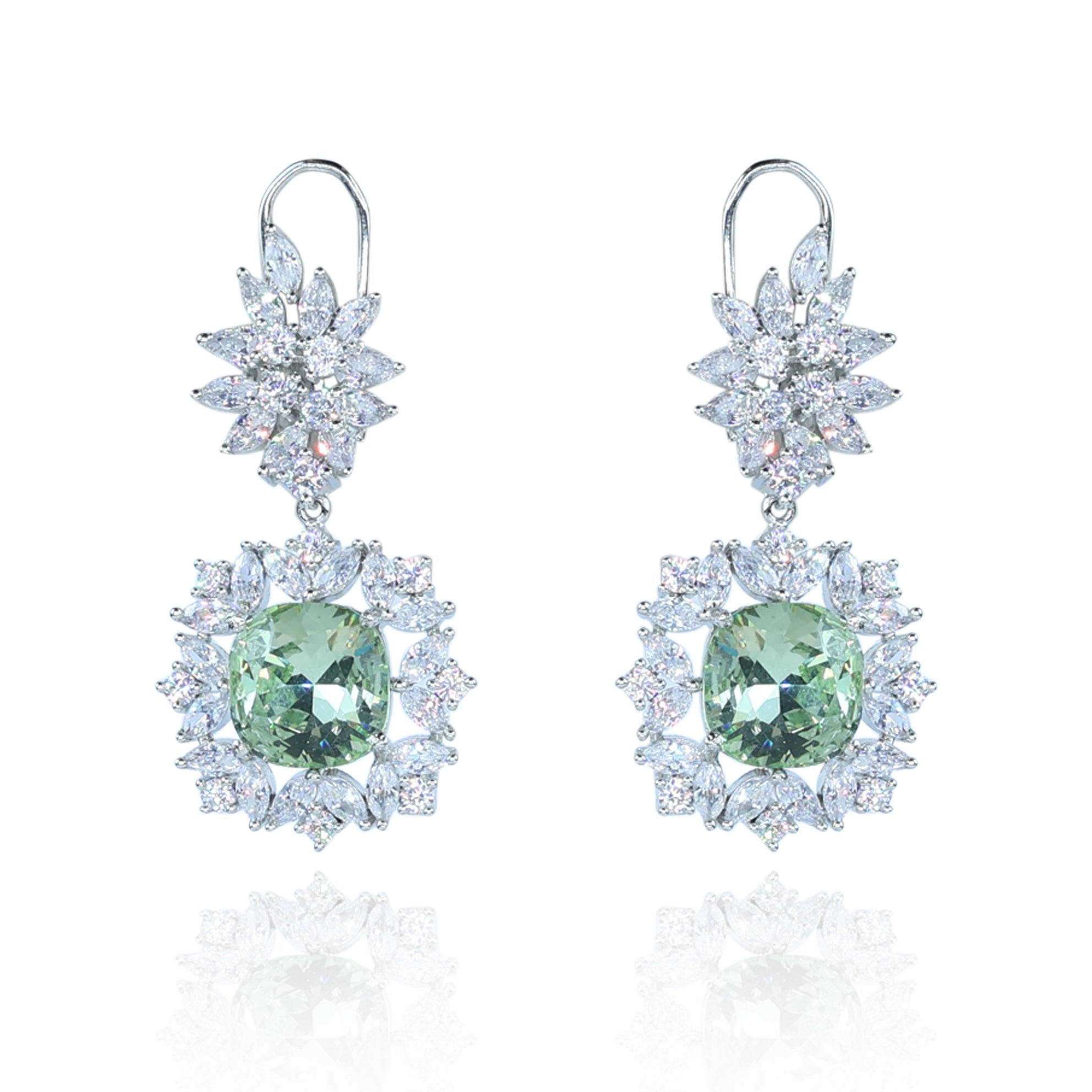 Aanura Silver Green Crystal Halo Drop Earrings