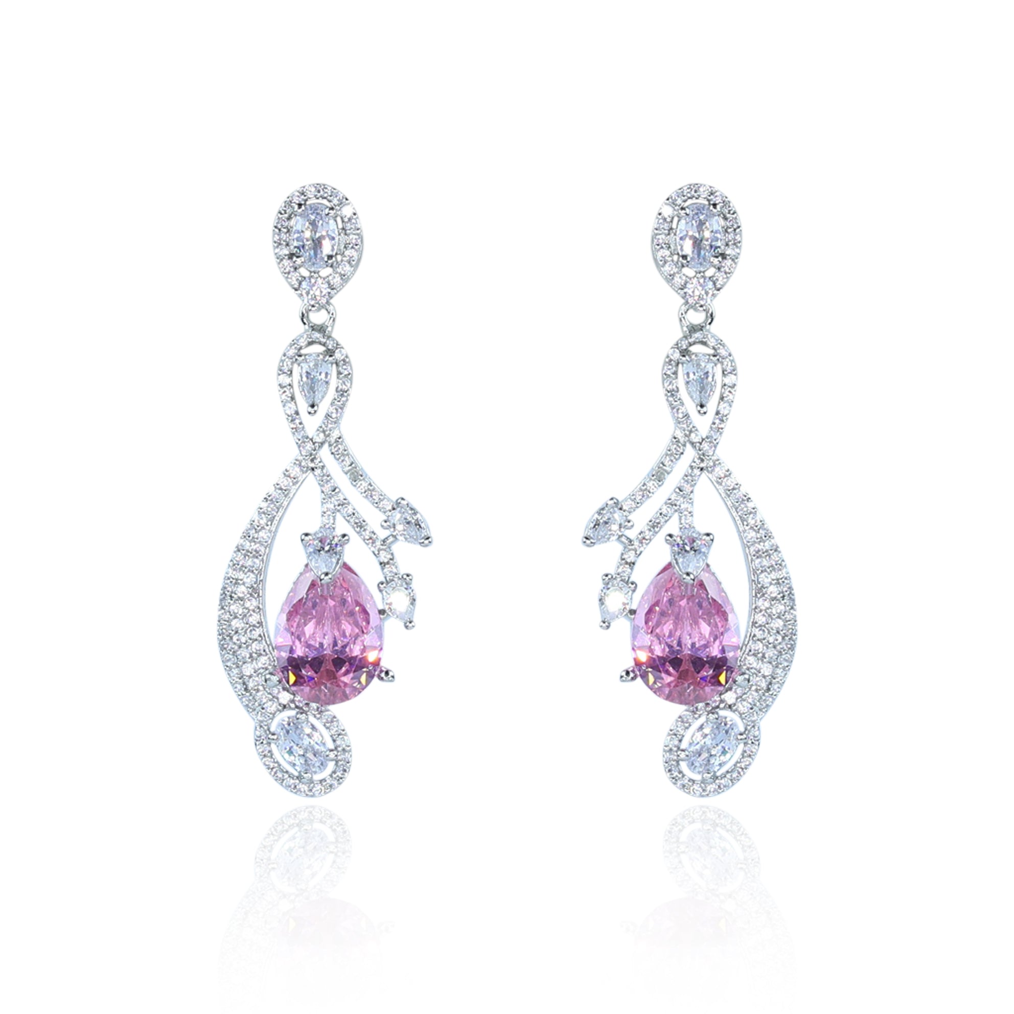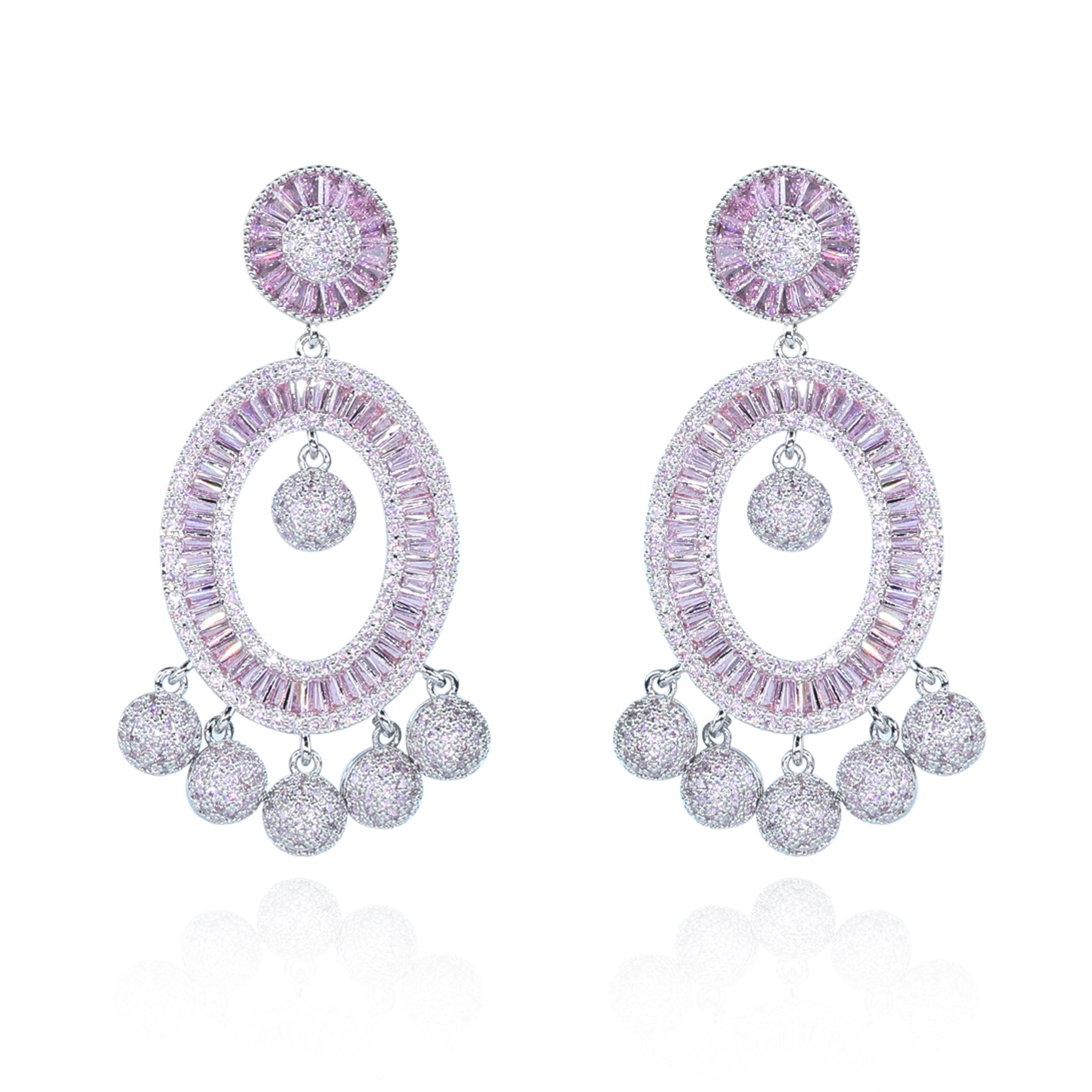 Aanura Pink Baguette Oval CZ Cluster Drop Earrings