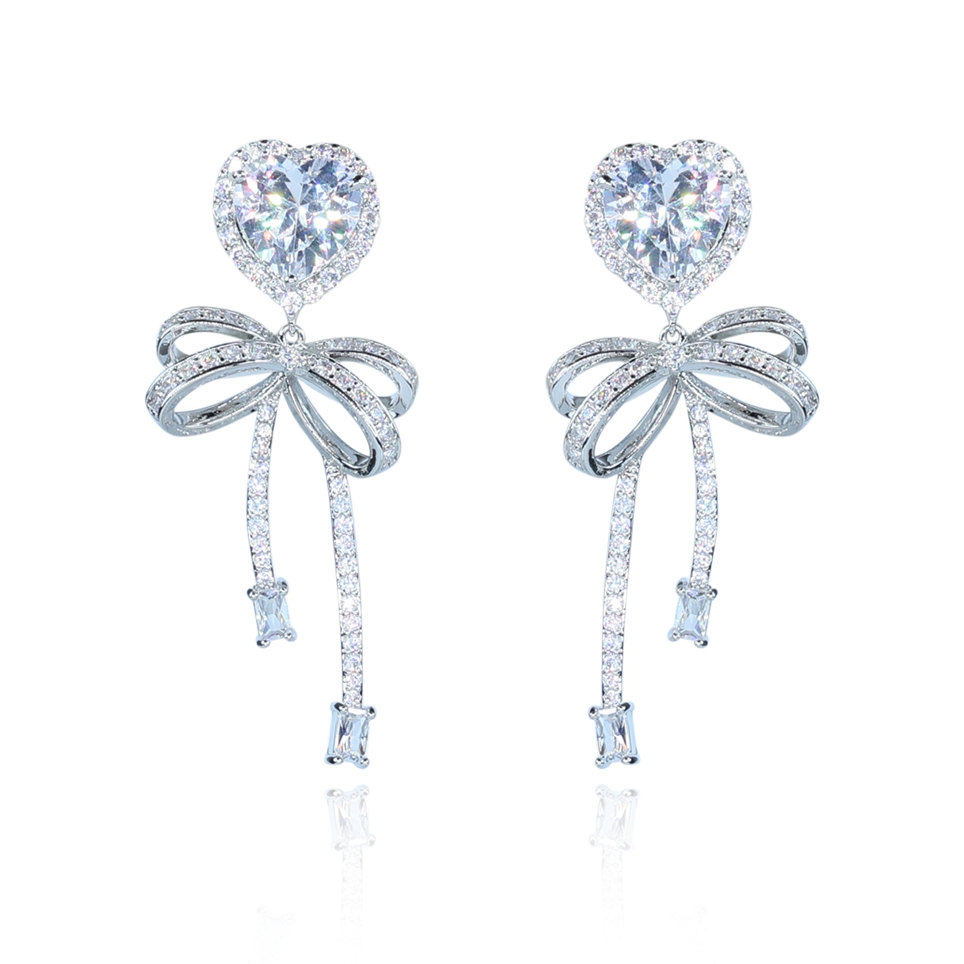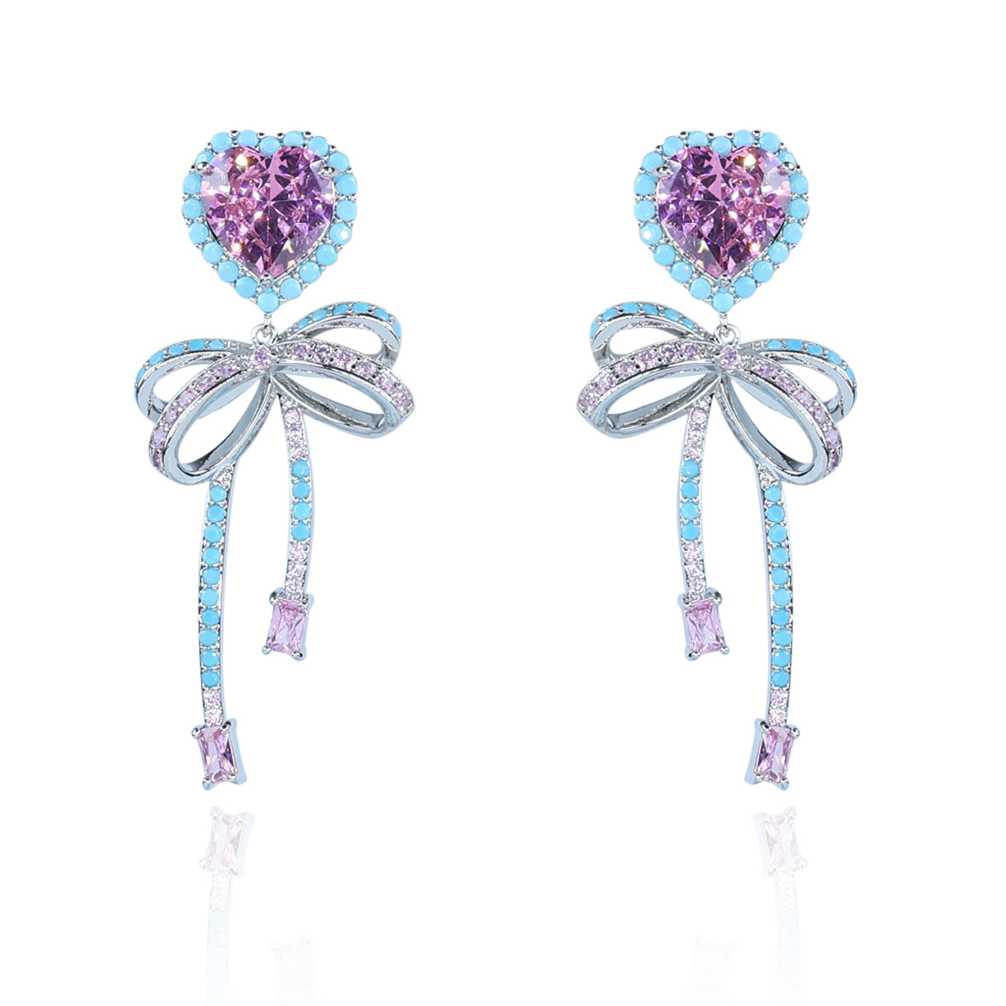 Aanura Pink Heart & Bow Crystal Drop Earrings