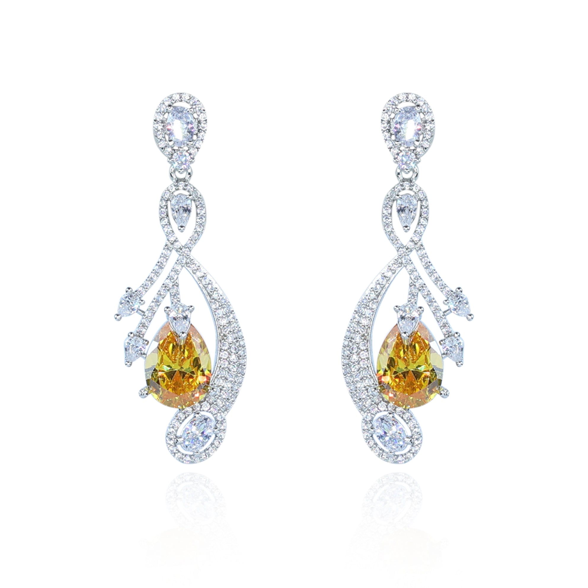 Aanura Silver Yellow Teardrop Crystal Drop Earrings