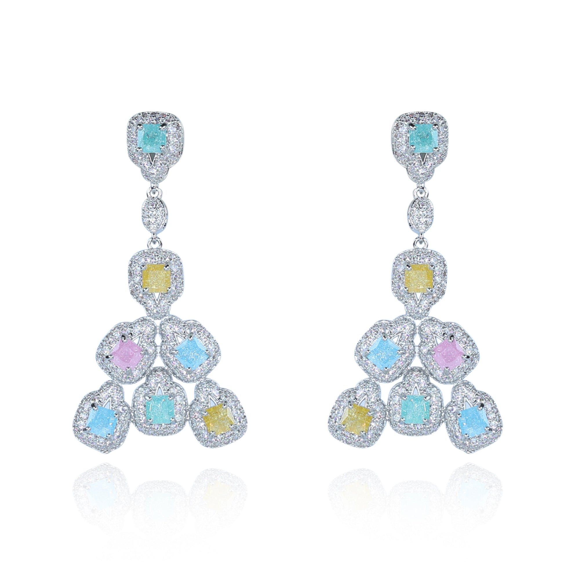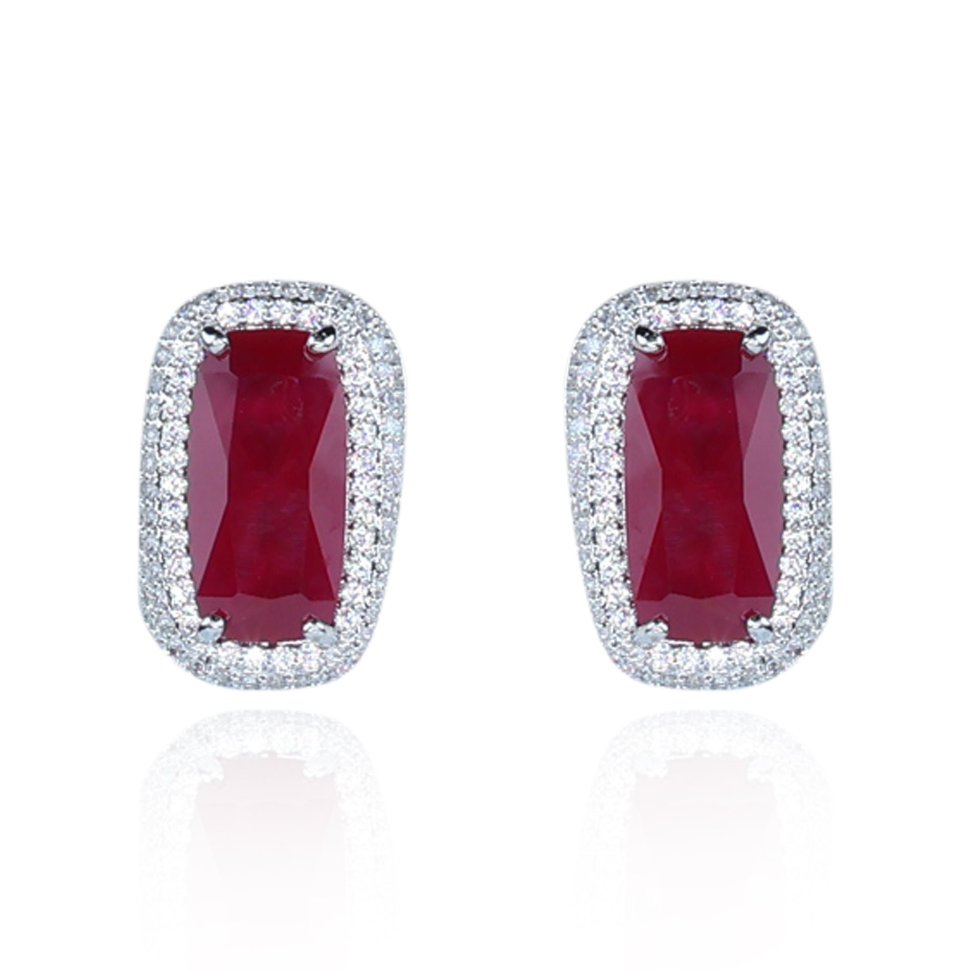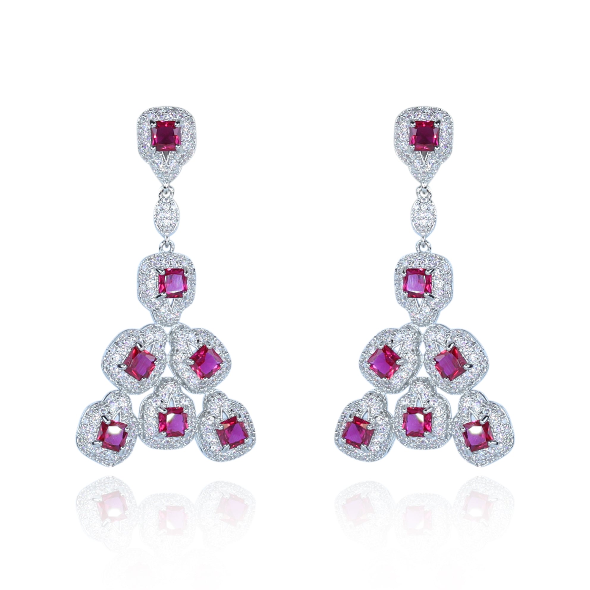 Aanura Silver Ruby Square Chandelier Earrings