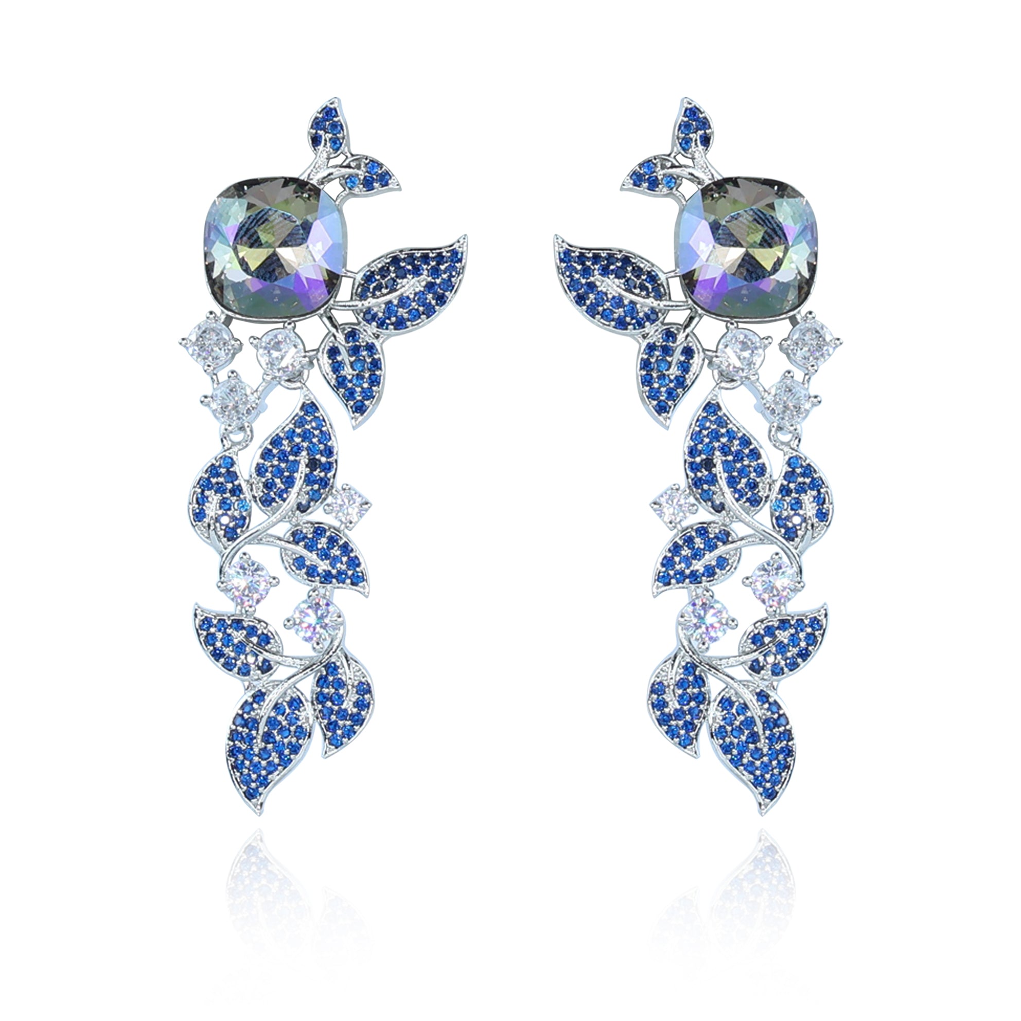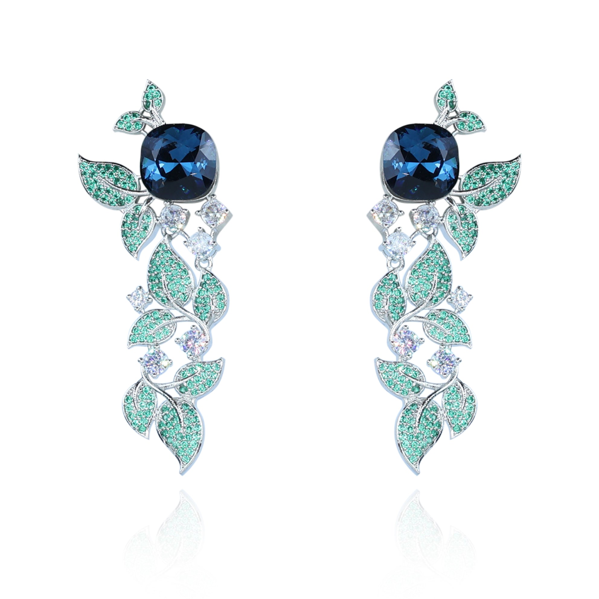 Aanura Blue Sapphire Leaf Cascade Earrings