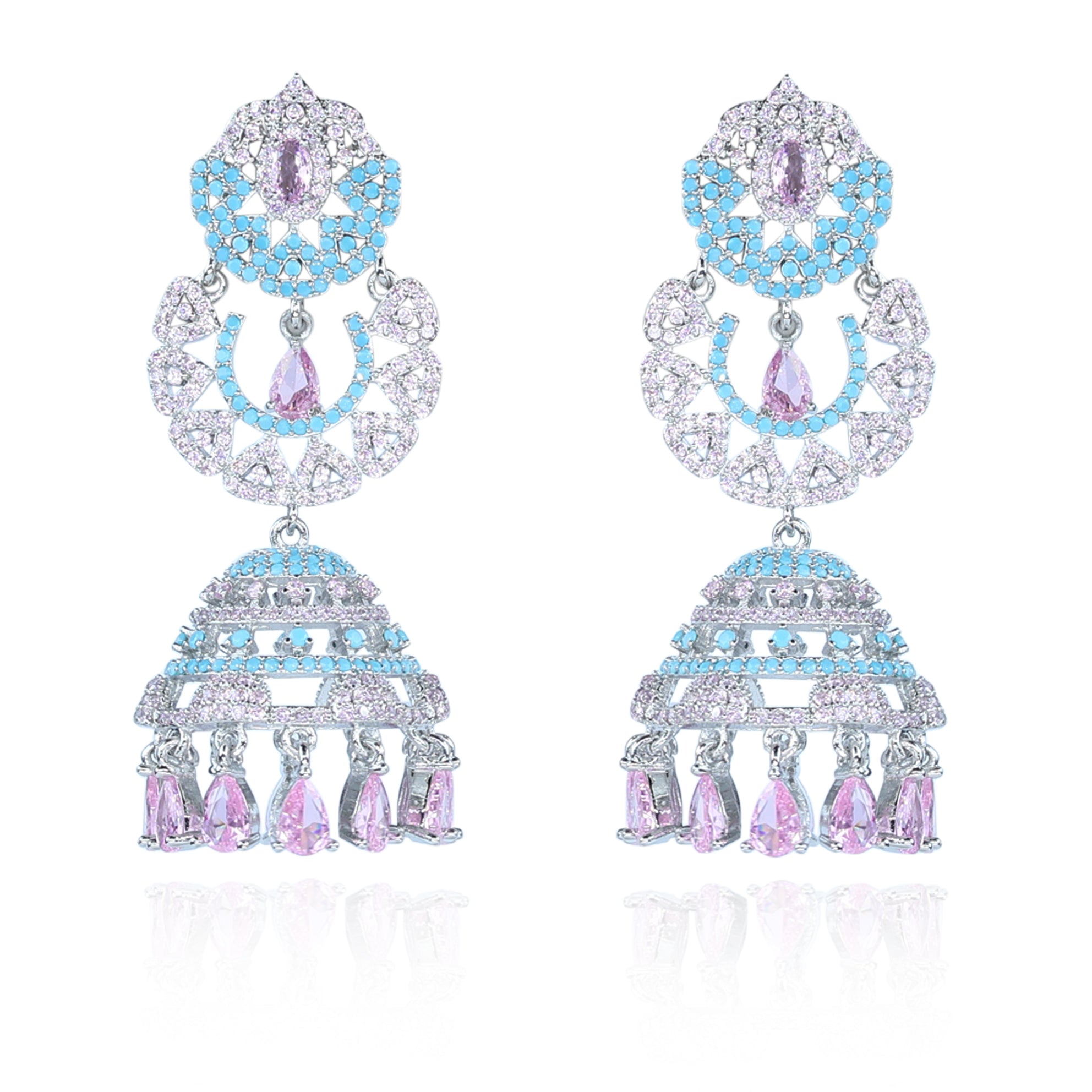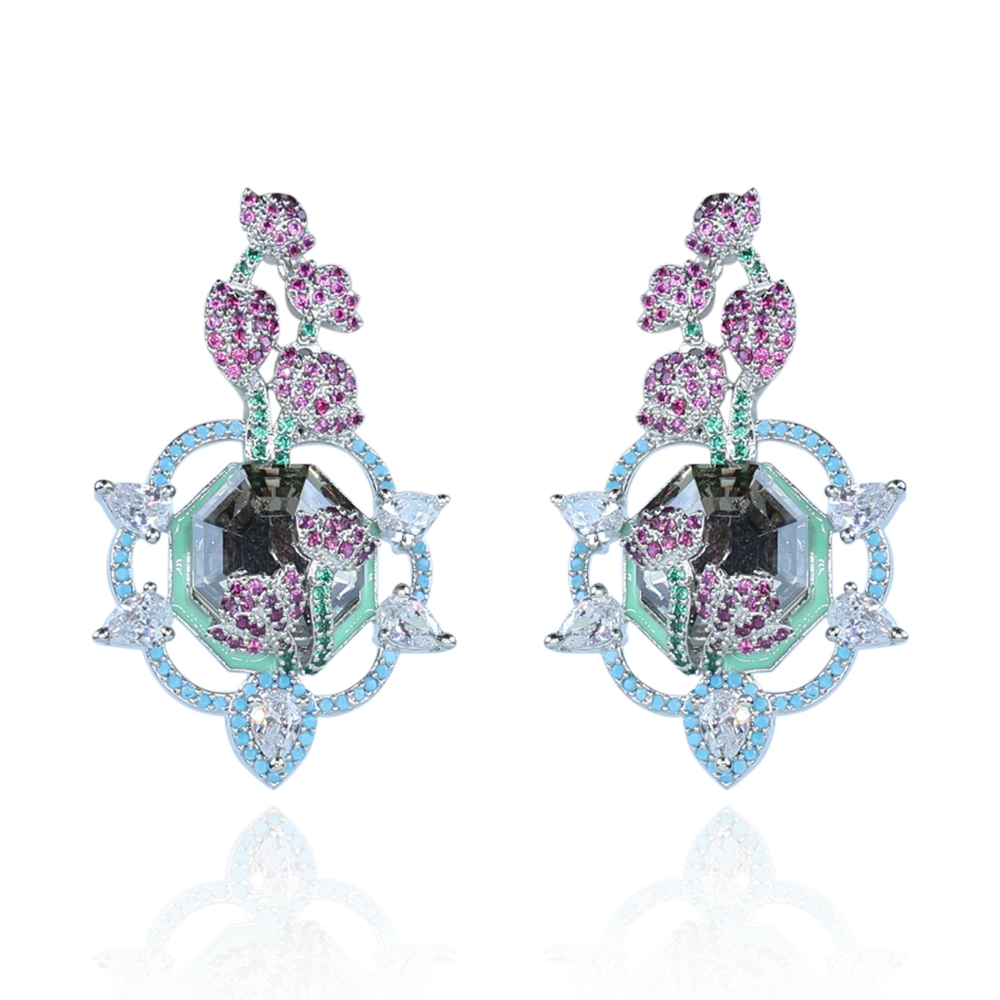 Aanura Floral Pink & Aqua Crystal Drop Earrings
