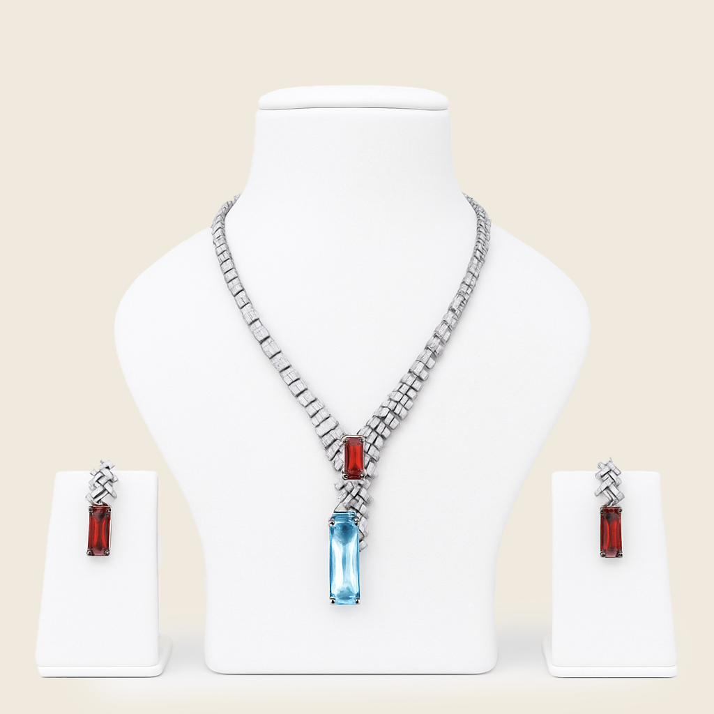 Aanura Ruby Red Bridal Necklace Set in Stainless Steel