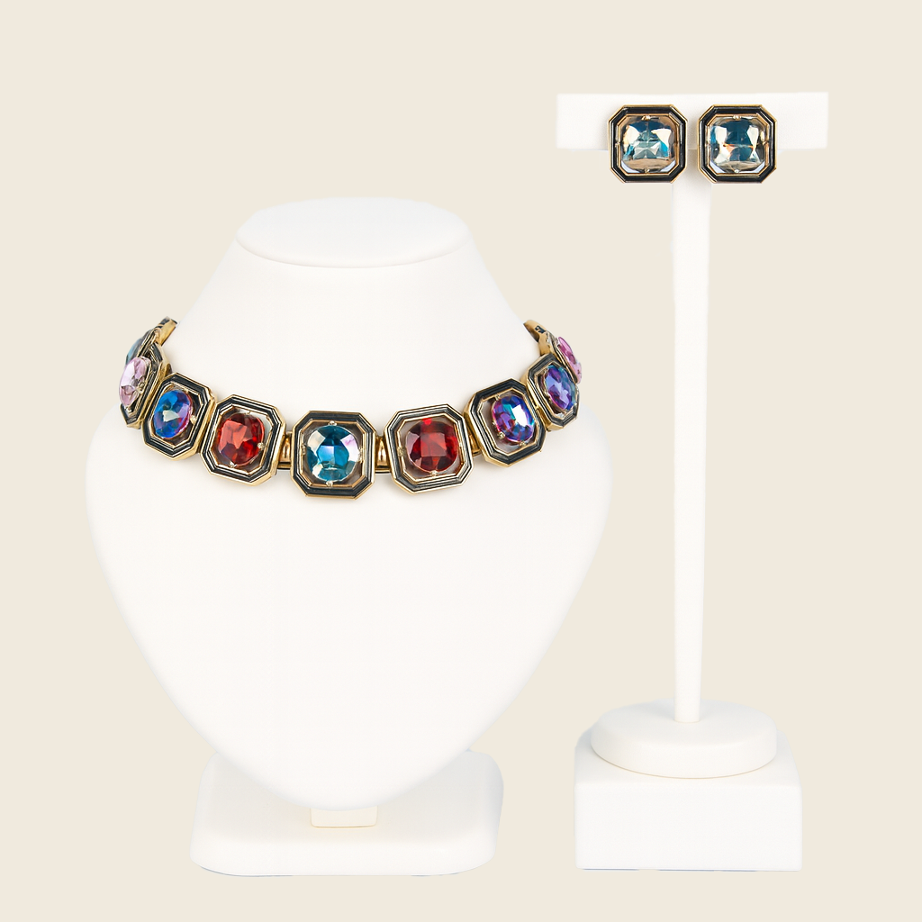Product Description:The Multicolor Crystal Choker Necklace Set is a statement jewelry piece featuring cushion-cut multicolor crystals in vibrant hues of purple, green, and blue, surrounded by...(30%)Regular price Rs. 7,000.00Sale price Rs. 7,000.00 Regular priceUnit price perRs. 10,000.00 -