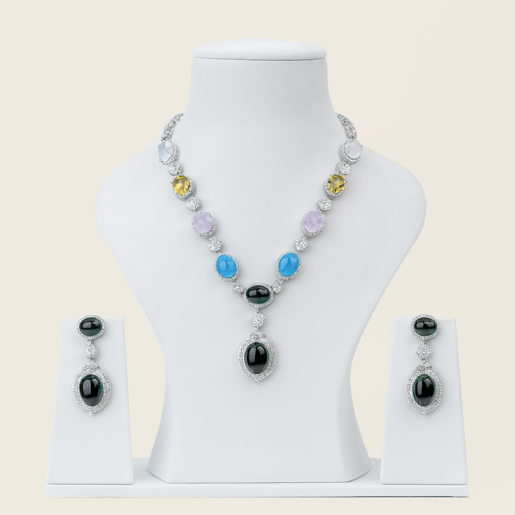 Aanura Multi-Colour Crystal Necklace Set with Earrings