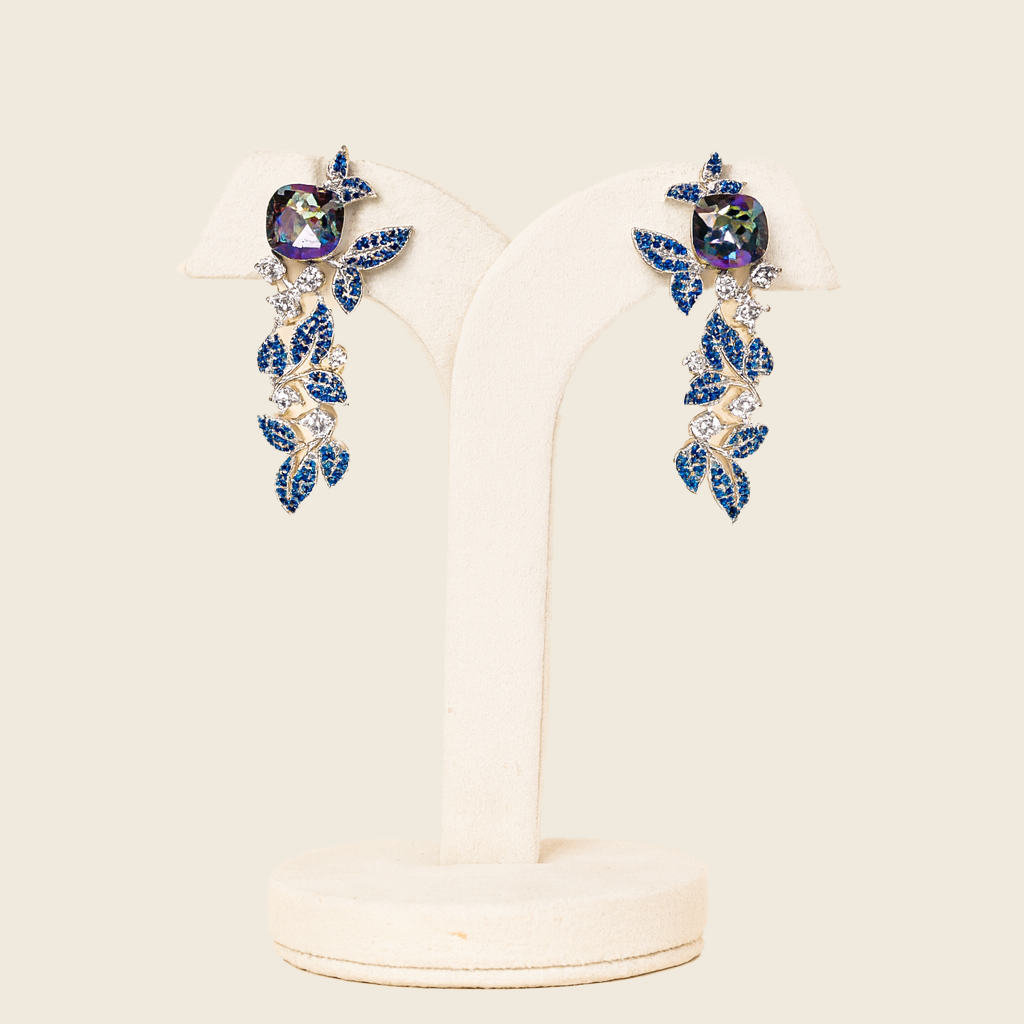 Aanura Blue Sapphire Leaf Cascade Earrings