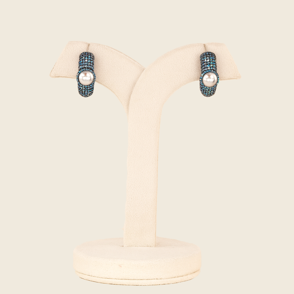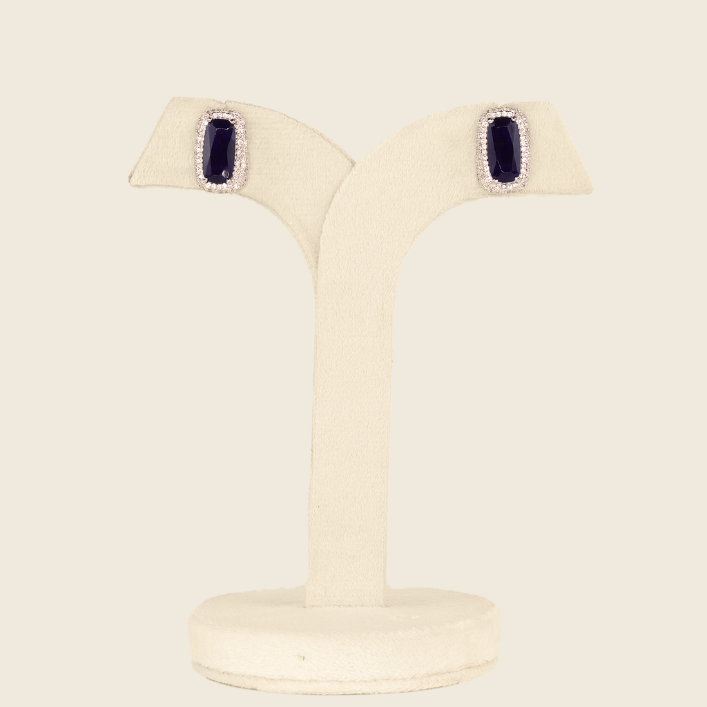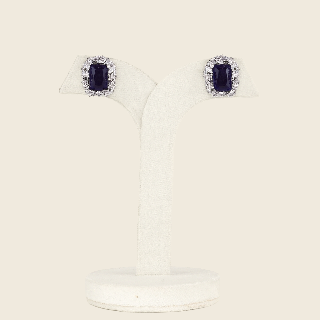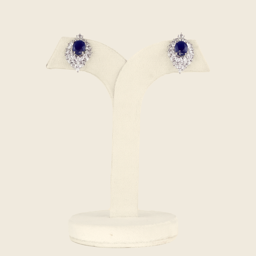 Aanura Royal Blue Oval Stud Earrings with CZ Halo