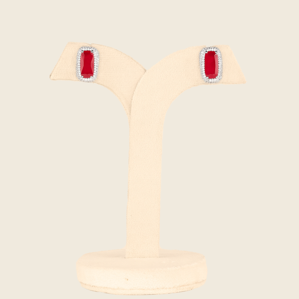 Aanura Red Oval Gemstone Pear Halo Stud Earrings