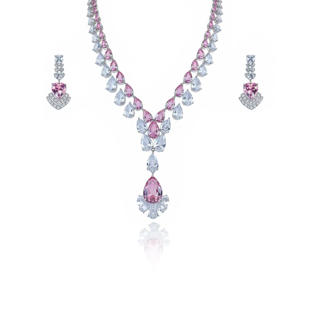 Product Description:The Royal Purple Crystal Drop Necklace Set is a breathtaking design featuring oversized round-cut purple crystals framed with cascading white crystal drops. Set in polished...(60%)Regular price ₹35,480.00Sale price ₹35,480.00 Regular priceUnit price per₹88,700.00 -