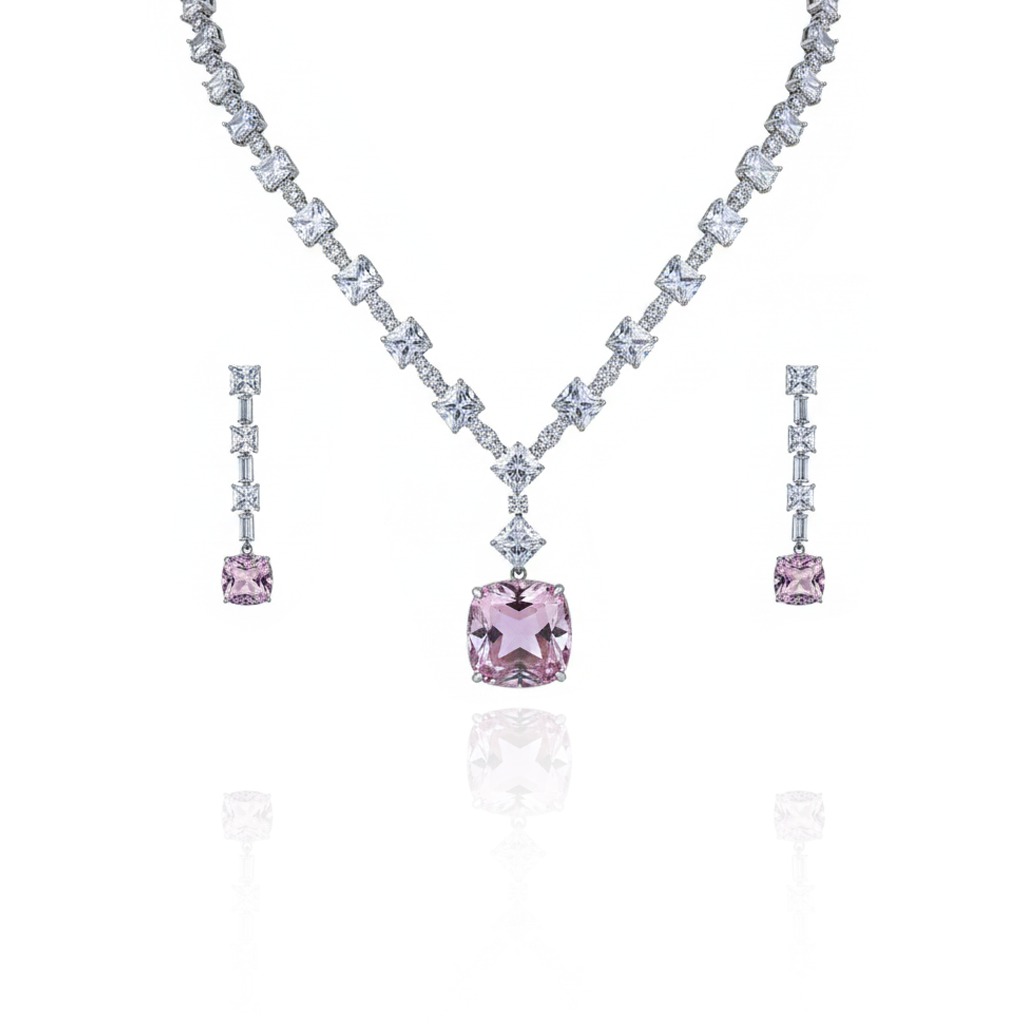Aanura Multicolor Square Crystal Necklace Set Stainless