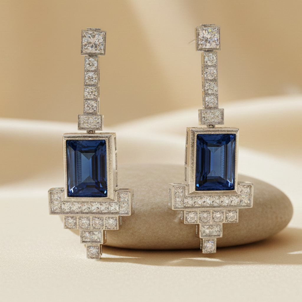 Design: Geometric Art Deco Style with Pavé Crystal Detailing