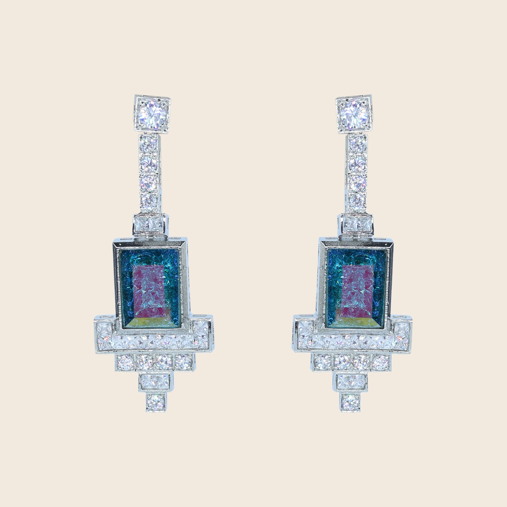 The Aanura Black Emerald Art Deco Earrings are a bold expression of vintage glamour and modern elegance. Featuring a striking emerald-cut black crystal framed with geometric pavé accents, these earrings embody the timeless sophistication of Art Deco design.