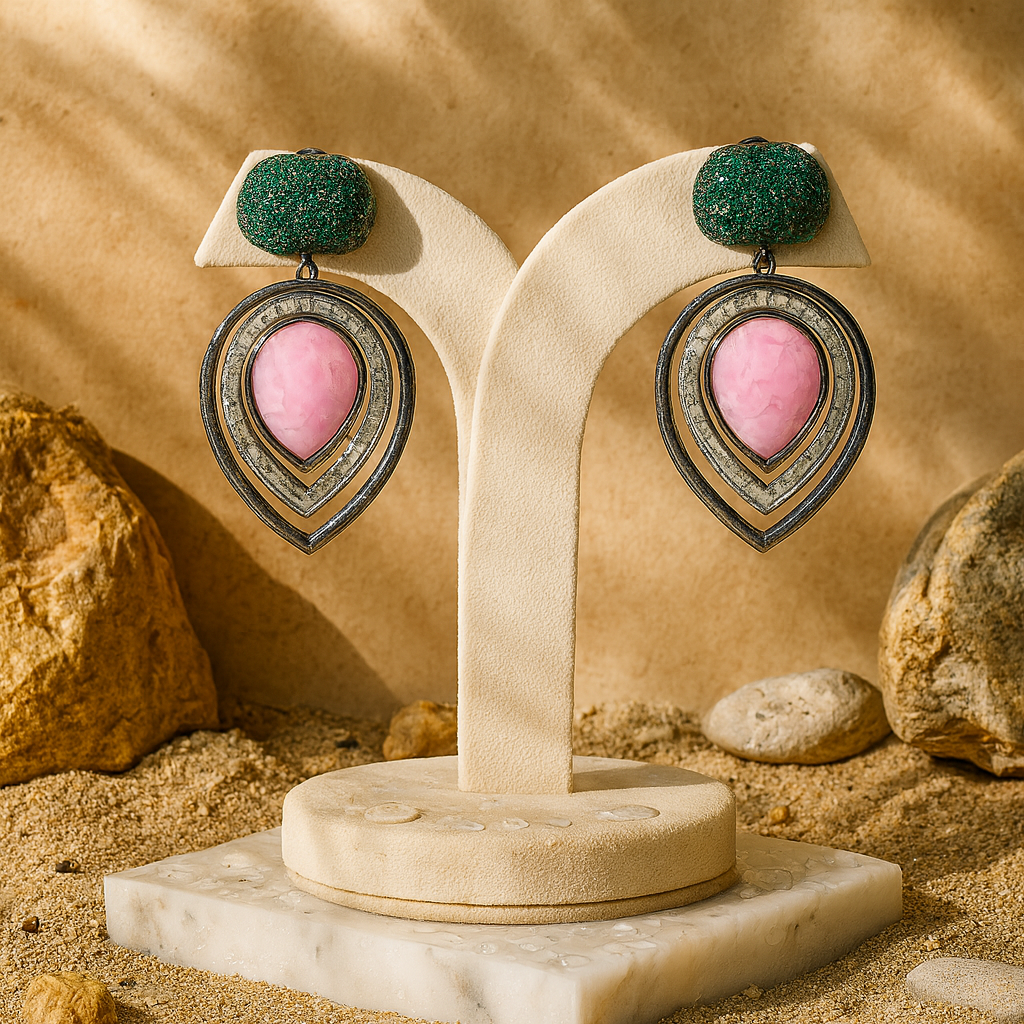 The turquoise-blue teardrop adds vibrance and freshness, while the pink pavé top creates a contrasting dual-tone glamour. A perfect mix for modern statement looks.