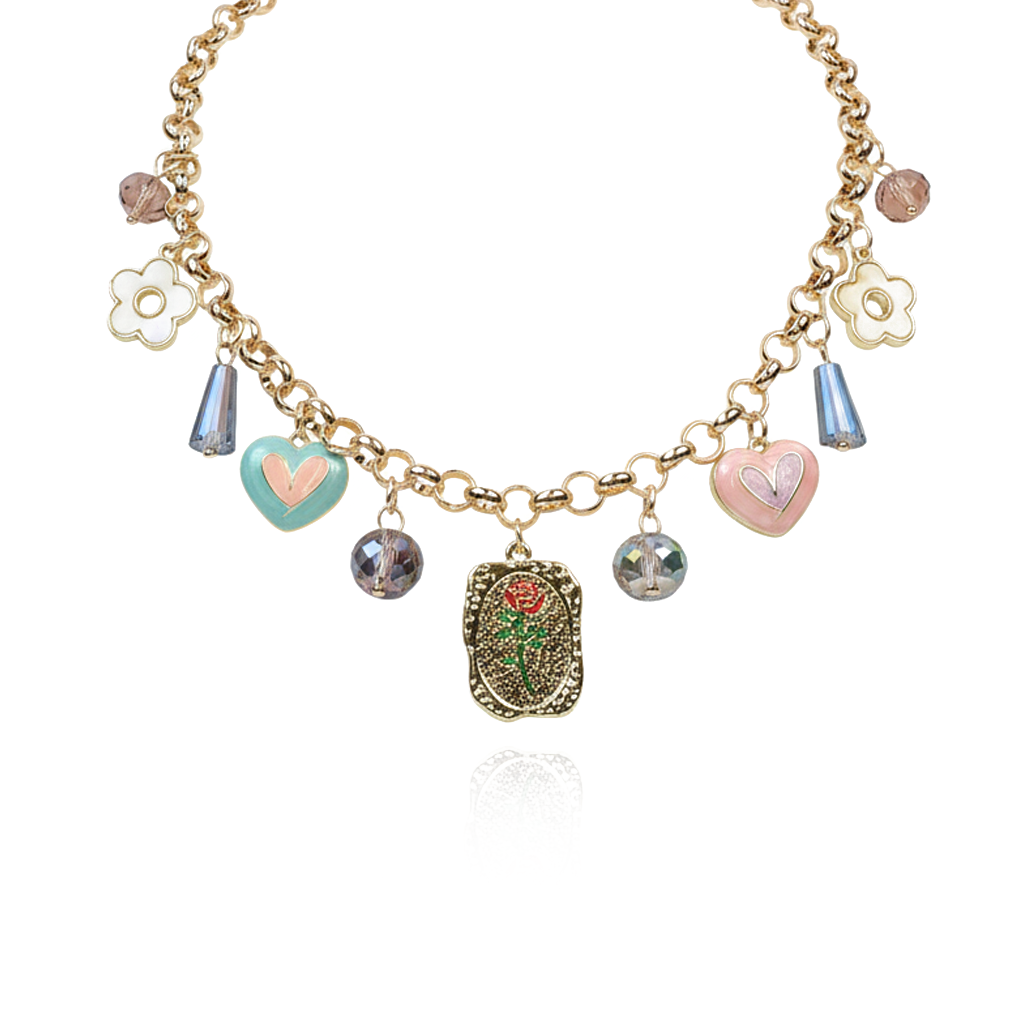 The Colorful Charm Gold Necklace is a vibrant accessory featuring a chunky gold chain adorned with playful stainless steel charms — including pastel enamel hearts, crystal beads, floral motifs, and a vintage-style pendant. Designed to add a touch of fun and uniqueness, this necklace blends youthful charm with elegant craftsmanship.