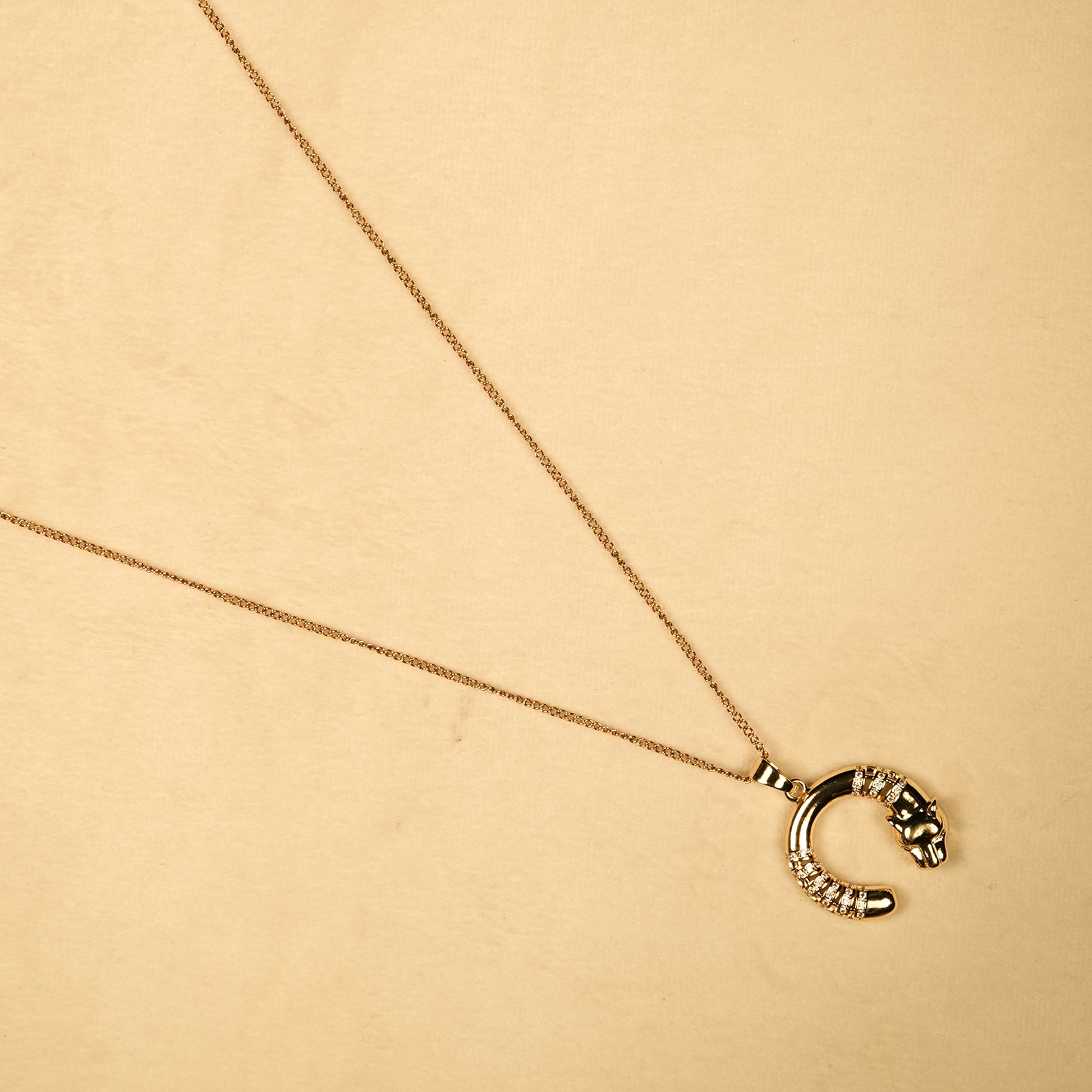This elegant Aanura pendant necklace features a sculpted crescent-inspired form accented with delicate stone detailing. The curved silhouette creates a sense of movement and grace, while the refined polish adds a luxurious yet modern touch. Designed for women who appreciate symbolic shapes and minimal statement jewellery, this necklace blends strength with softness in a timeless design.