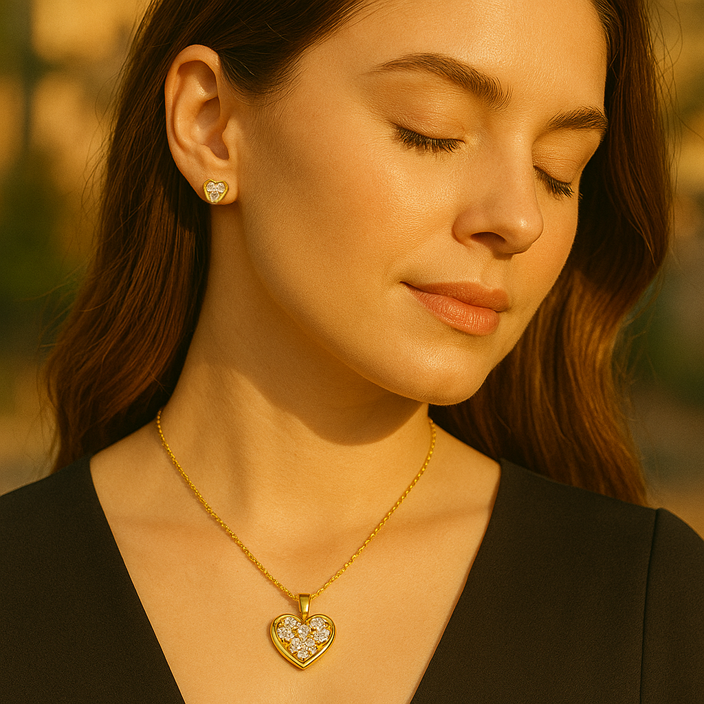 The Aanura Crystal Heart Necklace & Earrings Set is perfect for women who want to carry a symbol of love with them, whether as daily wear or a statement for special moments.