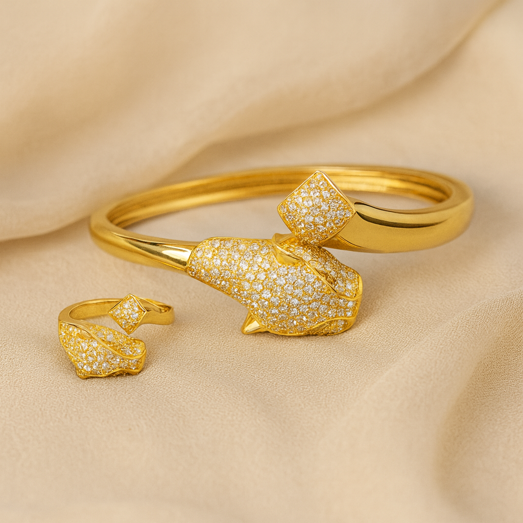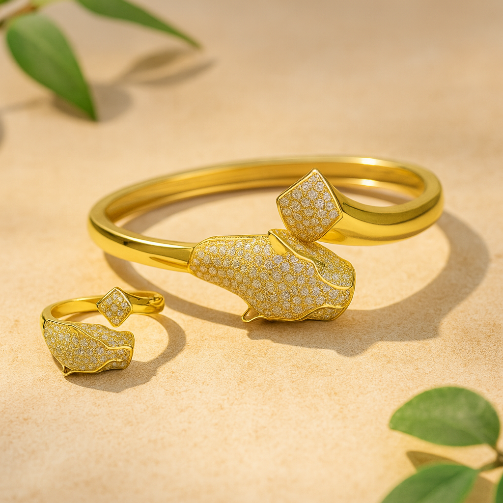 - Design: Dual floral motifs with pearl embellishments