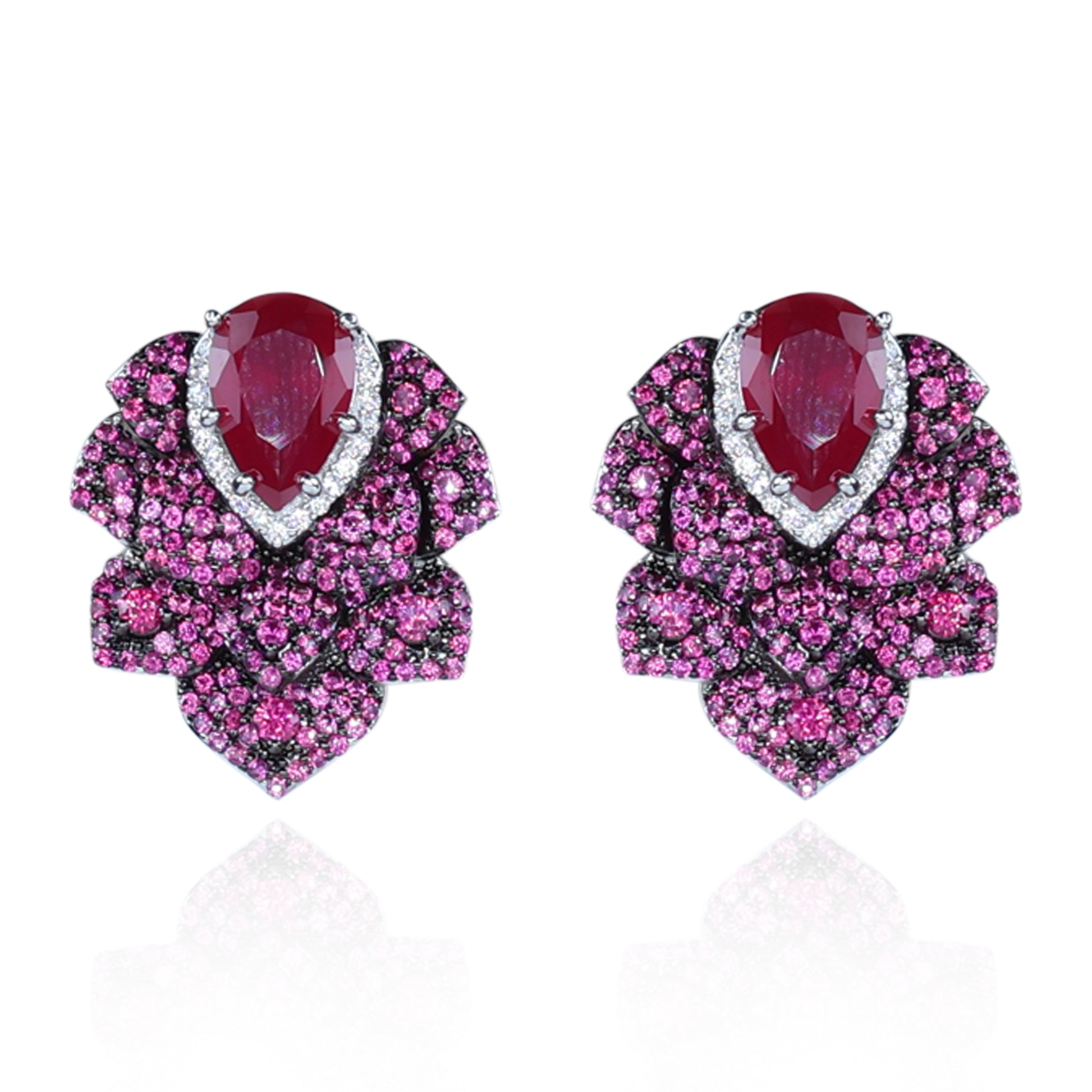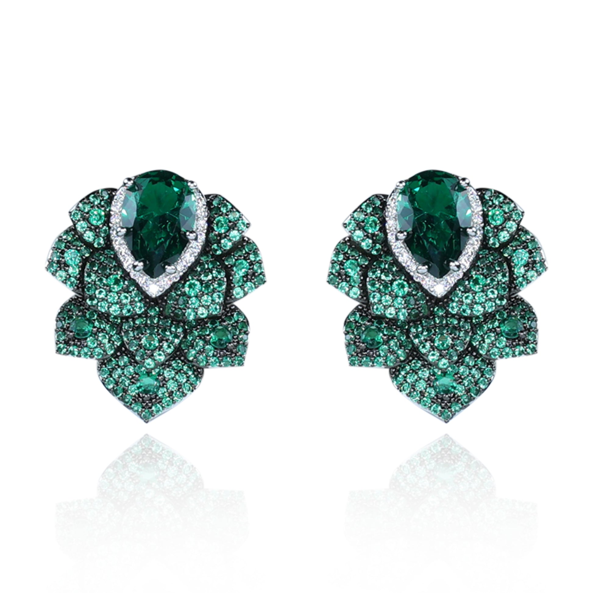 The Aanura Emerald Green Leaf Stud Earrings are a luxurious blend of nature-inspired elegance and bold glamour. Featuring an oval emerald-green crystal at the center, framed by layered pavé-set green crystals in a leaf formation with a shimmering halo, these earrings are both powerful and graceful.